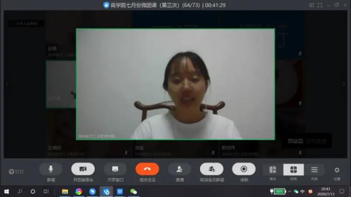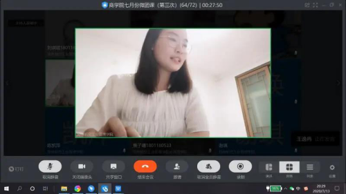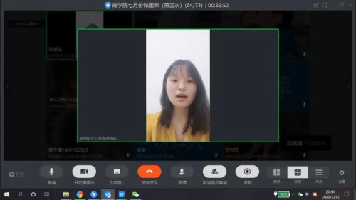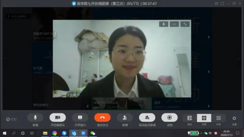为进一步推动深入学习习近平新时代中国特色社会主义思想,贯彻落实学习宣传《习近平谈治国理政》第三卷工作,引导青年树立为共产主义远大理想和中国特色社会主义共同理想而奋斗的信念和信心,郑州航院青年马克思主义者学习研究会(以下简称“青马研究会”)联合商学院团委于7月13日晚通过钉钉视频会议的形式,共同发起本学期第三次“云上微团课”——学习习近平总书记回信和《习近平谈治国理政》第三卷研习活动。商学院分团委、学院辅导员老师以及“青马研究会”、学生会、青年志愿者团和艺术团等部门的学生骨干近70人参加了本次学习。