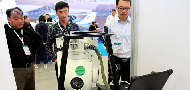博览会的首日,我校参展展位前就吸引了众多观众和专家的驻足询问与观看。“航空博览会让我们看到了许多新奇的高科技设备,郑州航院的‘龙之眼’引起了我们浓厚的兴趣。” 一位观众说。 这位观众提到的“龙之眼”就是我校在此次博览会上展出的“龙之眼”光电吊舱。光电吊舱又被业内人士称之为“夜战鹰眼”,一直以来运用于军事用途,它可以让作战飞机在昼夜恶劣气候条件下对目标进行探测、识别和跟踪,同时它还可以提供一定的空空目标跟踪和辅助导航能力。