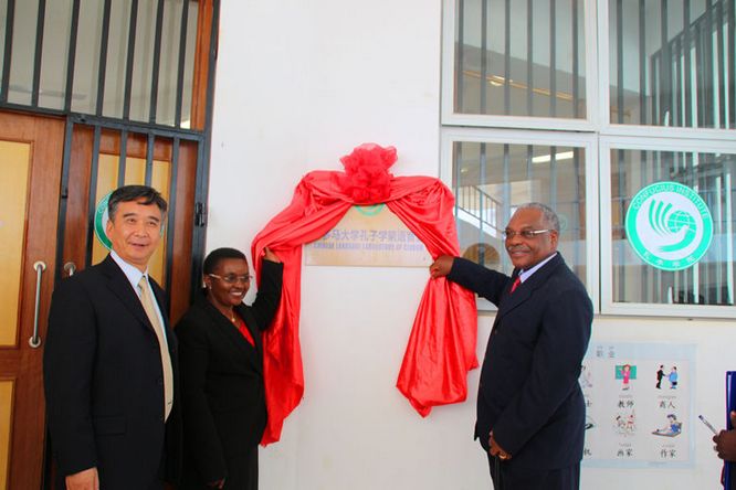 梁晓夏代表郑州航院对孔子学院电脑室等教学设施投入使用致以最诚挚的祝贺。他说,郑航-多多马大学孔子学院是坦桑尼亚第一所孔子学院,创建3年来,孔子学院蓬勃发展,取得了骄人的业绩。为了进一步加强两校的合作,实现汉语教学的现代化,促进孔子学院的健康快速发展,郑州航院向多多马大学捐赠了电脑室等教学设施。这些教学设施的建成和投入使用,将大大提升孔子学院的教学条件和水平,为多多马大学学生学习汉语,体验和了解中国文化提供更现代化的手段和更多的便利。对于孔子学院的未来发展,梁晓夏希望两校以孔子学院为桥梁和纽带,在教师互派、学生交换、科学研究等各个领域都结出累累硕果,为两校和两国的合作交流及友谊,乃至为全人类的发展做出更多的努力和贡献。