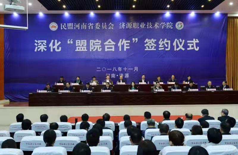 2015年,我校参与民盟河南省委与济源职业技术学院签订的盟院合作协议。三年来,在学校的大力支持下,民盟郑州航院总支作为6家盟院合作单位之一,与济源职业技术学院进行了深入合作,取得了良好效果。此次签约将对济源职业技术学院机电工程系的相关专业建设进行重点对口帮扶。