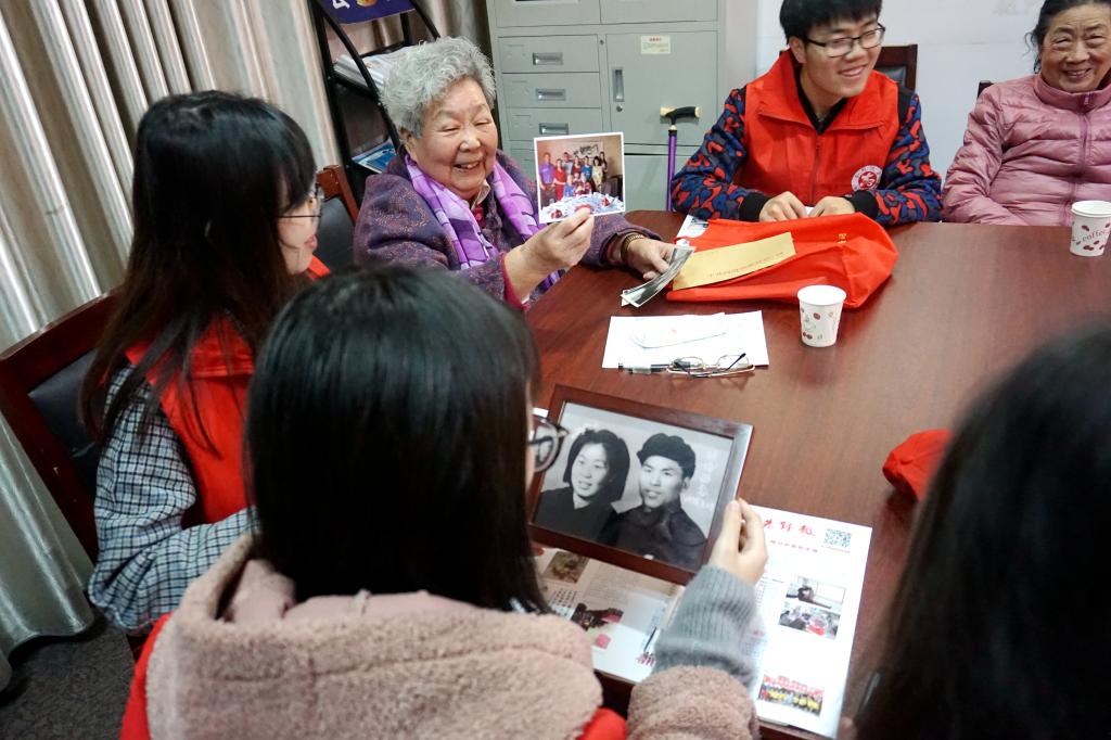 活动中,志愿者与省委社区开展“聆听历史回响 传承红色基因”为主题的座谈会。四位退休老党员带来了老照片,与志愿者分享了照片背后的故事。省委幼儿园退休老教师孙玉芝告诉志愿者,无论何时都要不忘初心、牢记使命,全心全意为人民服务。