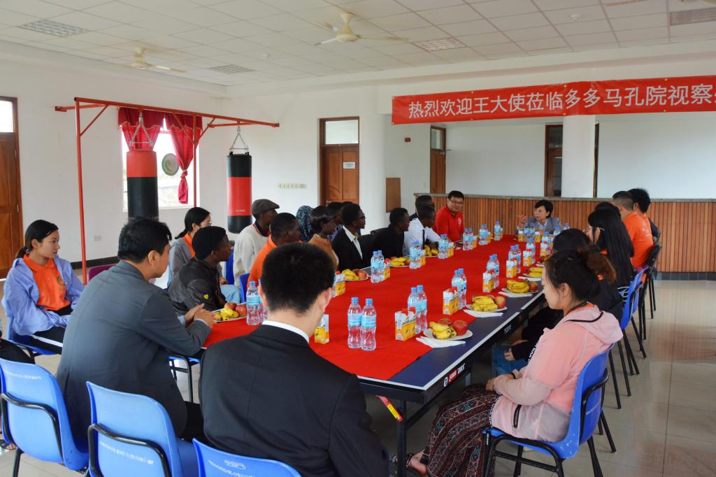 在元旦即将到来之际,当地时间12月18日,中国驻坦桑尼亚大使王克视察郑州航院—多多马大学孔子学院,并慰问孔院师生,与师生代表进行座谈。中国驻坦桑尼亚大使馆政治处参赞梁林、文化处参赞高炜陪同视察。