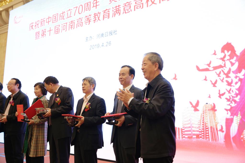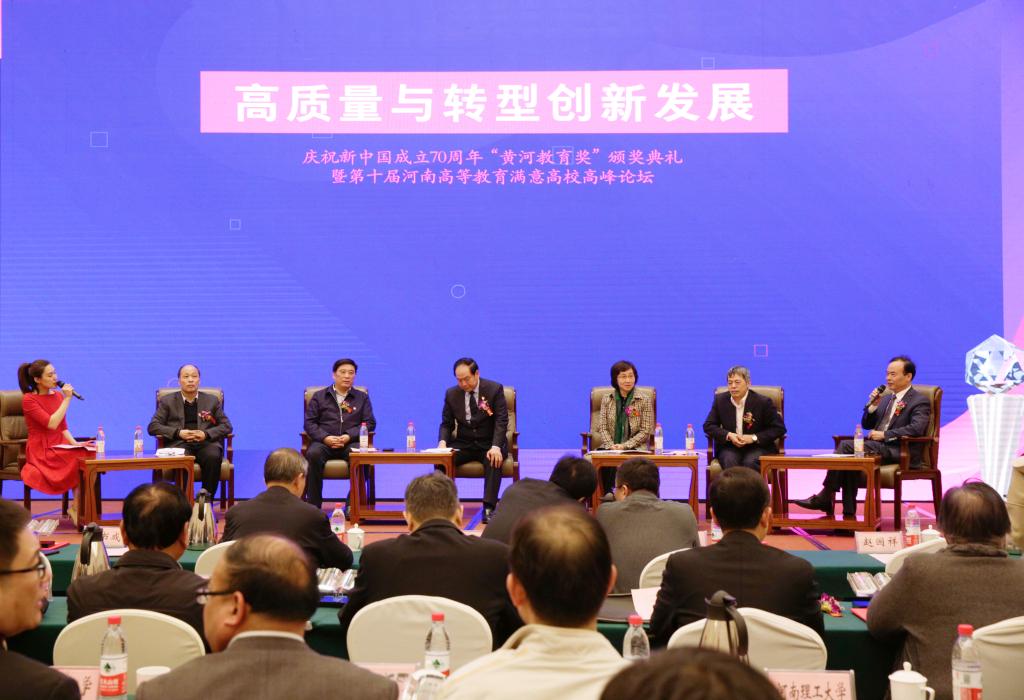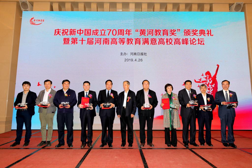 4月26日,河南日报社举办的庆祝新中国成立70周年“黄河教育奖”颁奖典礼暨第十届河南高等教育满意高校高峰论坛在郑州黄河迎宾馆举行。