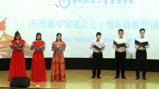 本次活动由党委统战部主办、民航学院承办,以“庆祝新中国成立70周年”为主题,以诗歌朗诵为表现形式,讴歌新中国成立70年来我国在经济建设、社会发展等方面取得的巨大成就。
