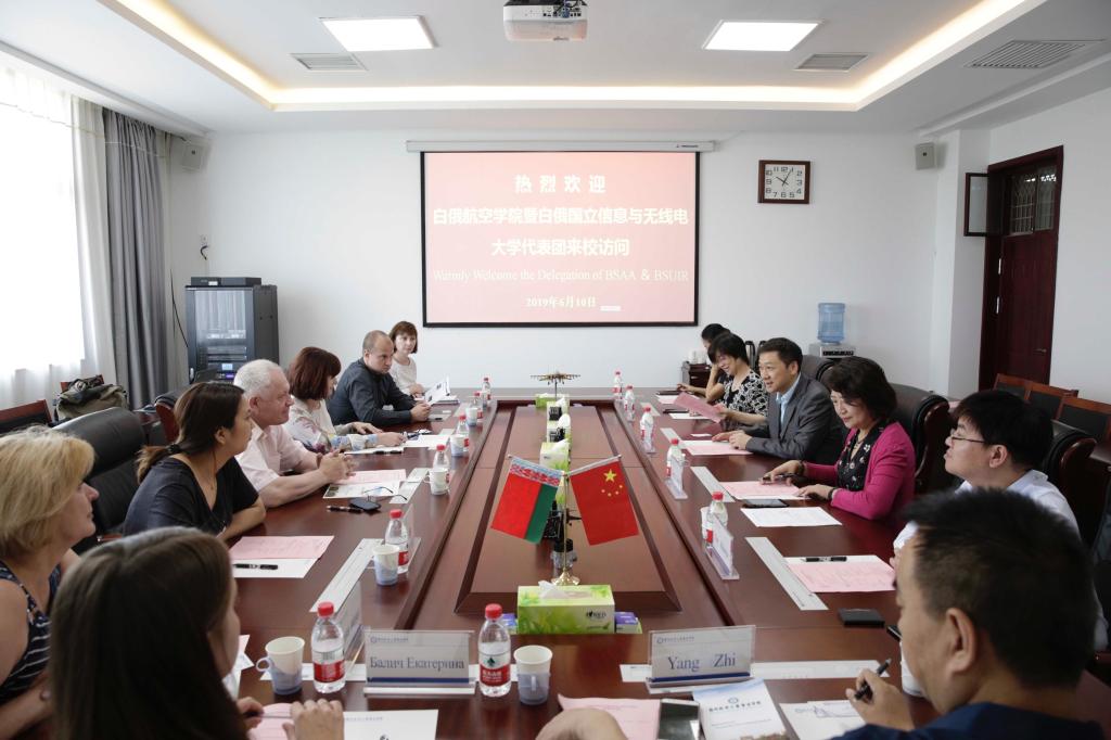 6月10日,白俄罗斯国立航空学院副校长索尔达托娃·奥利格与国立信息与无线电大学副校长吉克·谢尔盖代表团一行8人来校访问。副院长赵健热情接待了代表团成员。