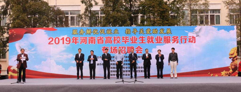 9月20日,河南省高校毕业生就业服务行动启动仪式暨河南省人力资源市场龙子湖市场揭牌仪式在我校中心广场举行,标志着河南省人力资源市场在高校设立的第一家分市场正式落户我校。河南省2019高校毕业生就业服务行动专场招聘会、我校2020届毕业生秋季校园招聘会同期举行,共吸引河南能化集团、格力、京东、顺丰速运等在内的400多家企事业单位,为毕业生提供近20000个就业岗位。