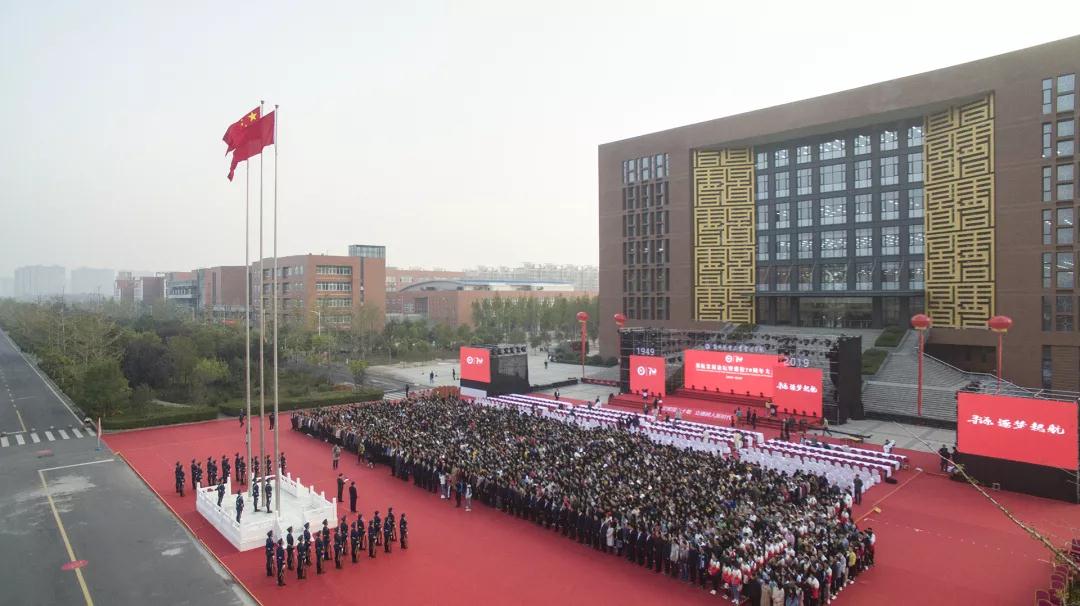 10月19日,是我校举行郑州航院发展论坛暨建校70周年大会的日子。早7:00,我校在龙子湖校区国旗广场隆重举行建校70周年主题升国旗仪式。在校校领导付强、李勇、石培哲、杨培、贺金社、张锐、张文强、赵健、李广慧、李陶然参加仪式。