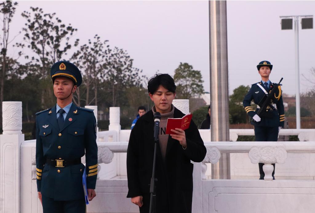 宪法晨读活动中,18级学生代表唐龙华带领参加仪式的全体师生集体诵读了宪法节选内容。