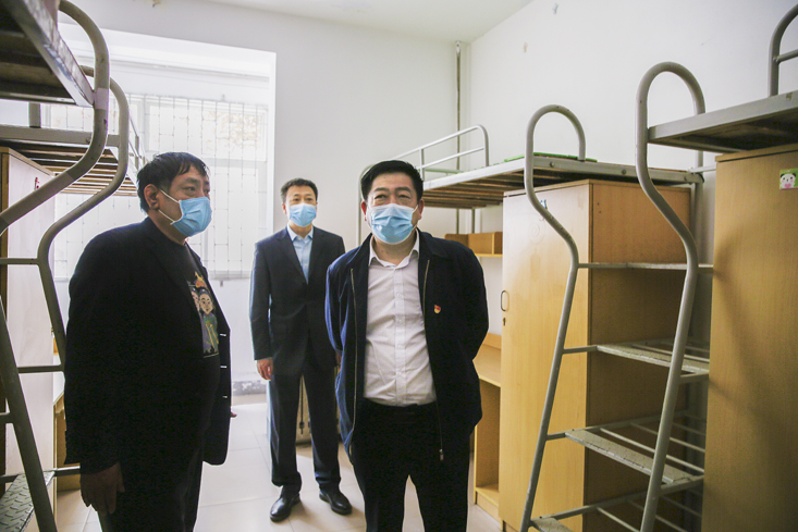 督查组先后现场查看了学校大门检测通道、餐厅、学生宿舍等重点场所,检查防疫设施和防疫物资准备情况,详细询问学生返校后分批错峰就餐和线上线下教学衔接等生活学习安排、教工返校与工作人员管理等情况,对学校各项准备工作给予了充分肯定。