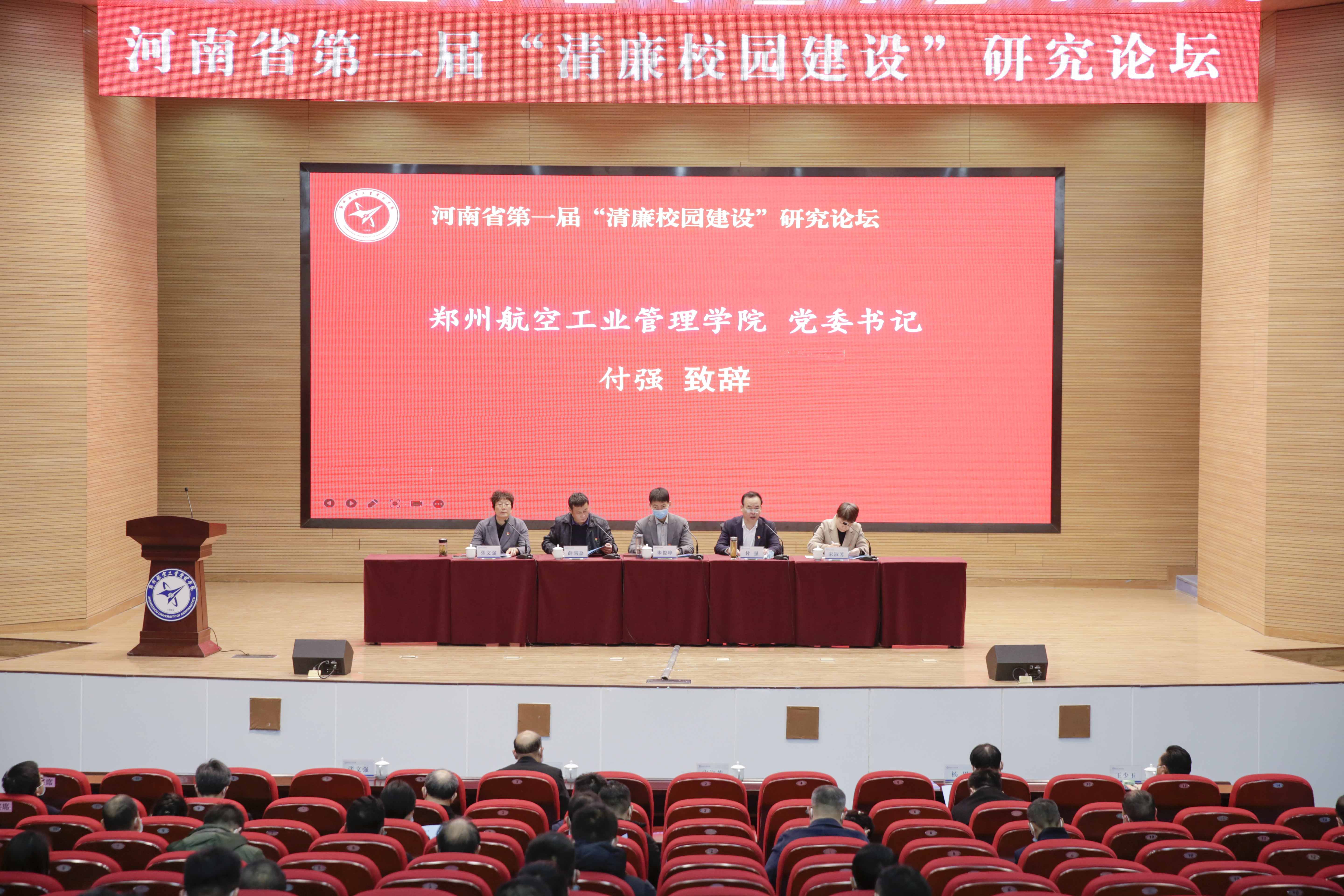 12月23日,河南省首届“清廉校园建设”郑航论坛在我校举办。校党委书记付强出席论坛开幕式并致辞,开幕式由校纪委书记、监察专员张文强主持。