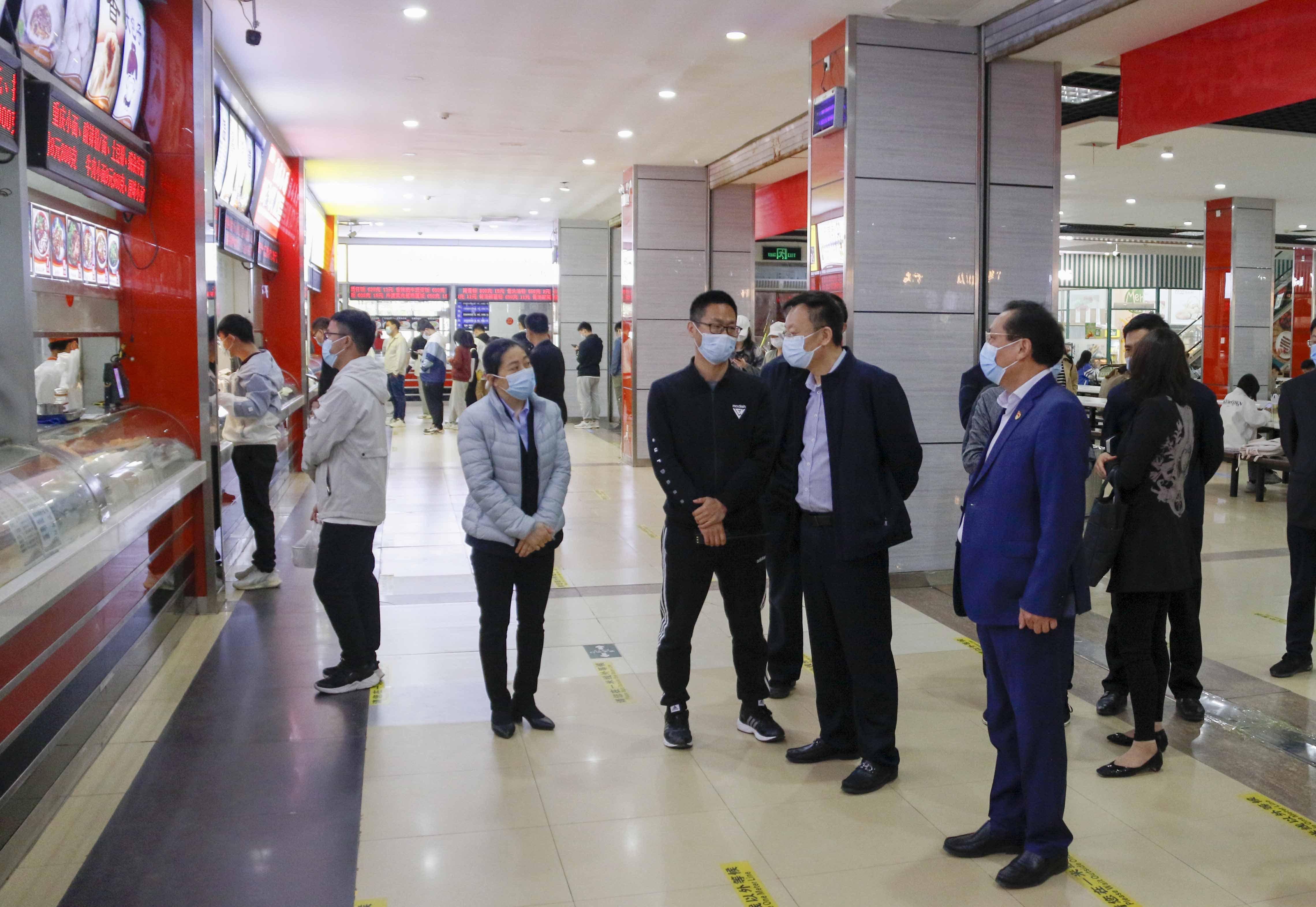 督查组一行查阅了学校疫情防控工作相关资料,实地查看了防疫物资储备室、图书馆、学生宿舍、校医院、快递点、校园超市、食堂等疫情防控重点区域、关键环节,深入了解校园出入人员管理、疫情防控物资储备、应急处置机制建立、食堂就餐管理、日常生活保障、卫生防疫消杀等方面的防控措施落实情况。