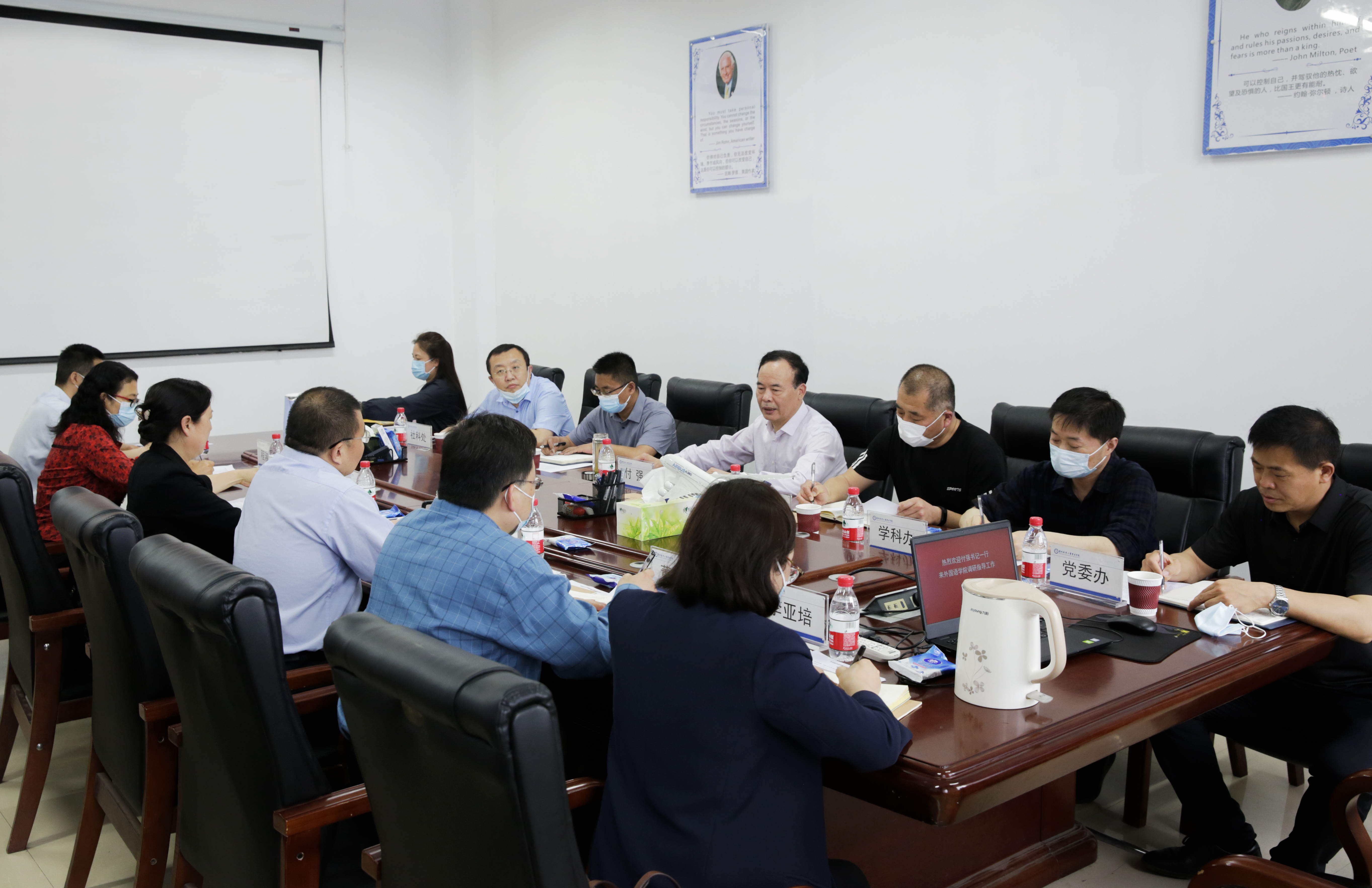 付强还就落实落细疫情防控工作要求,认真做好大学毕业生就业工作,扛稳立德树人政治责任、维护好学校安全稳定,做深做细大学生思想政治工作等,与院系负责同志进行深度交流沟通。