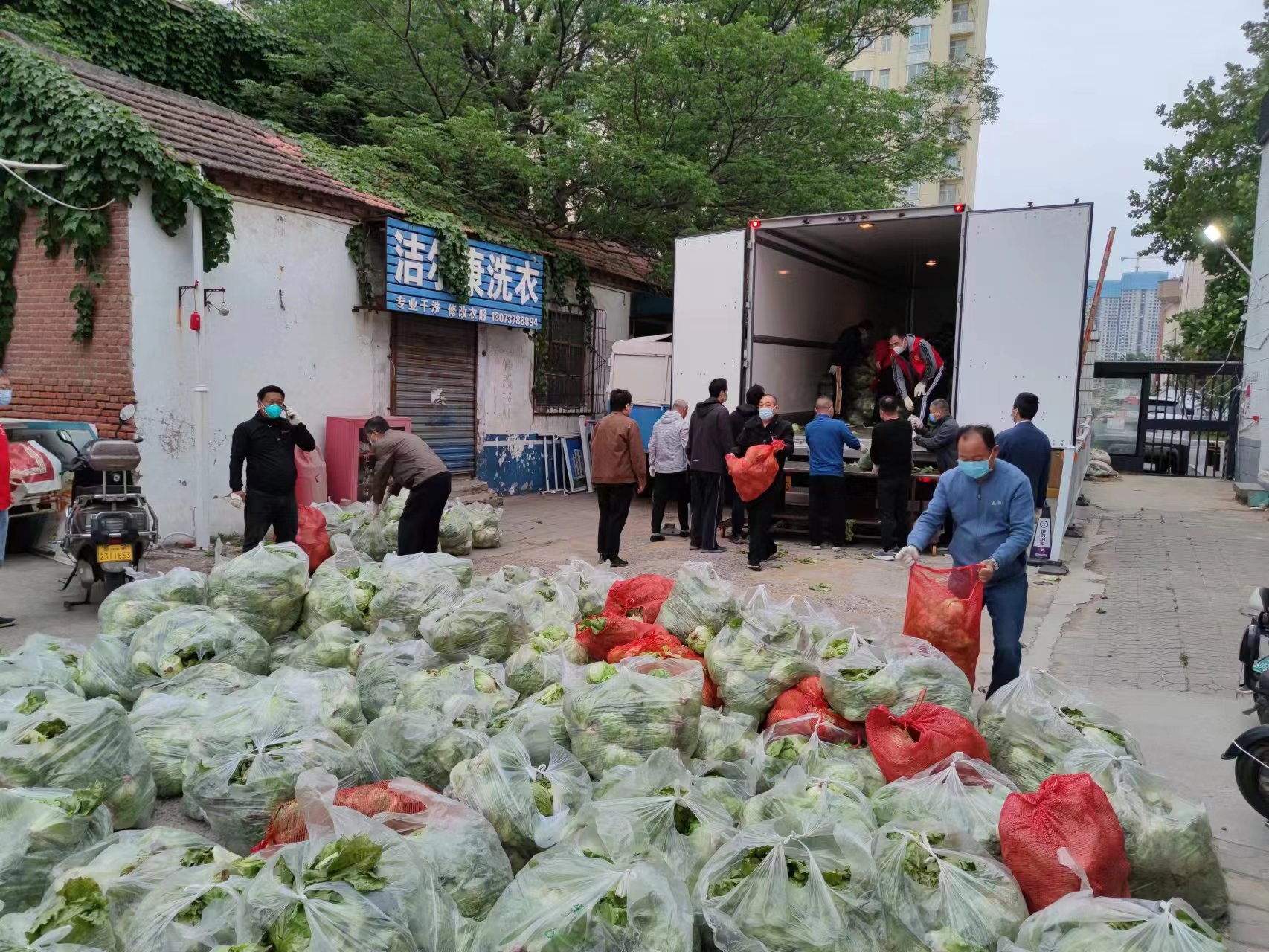5月8日凌晨4:00,创新创业中心主任张国辉、土木建筑学院副院长郑宾国、后勤管理处张超等二十个志愿者已经守在家属院南门,随着蔬菜运输车的到来,第一时间将近万斤蔬菜从运输车上卸下。早上5:30开始向家属院居民进行分发,早上8:00,所有的蔬菜分发到家属院教职工及住户手中。