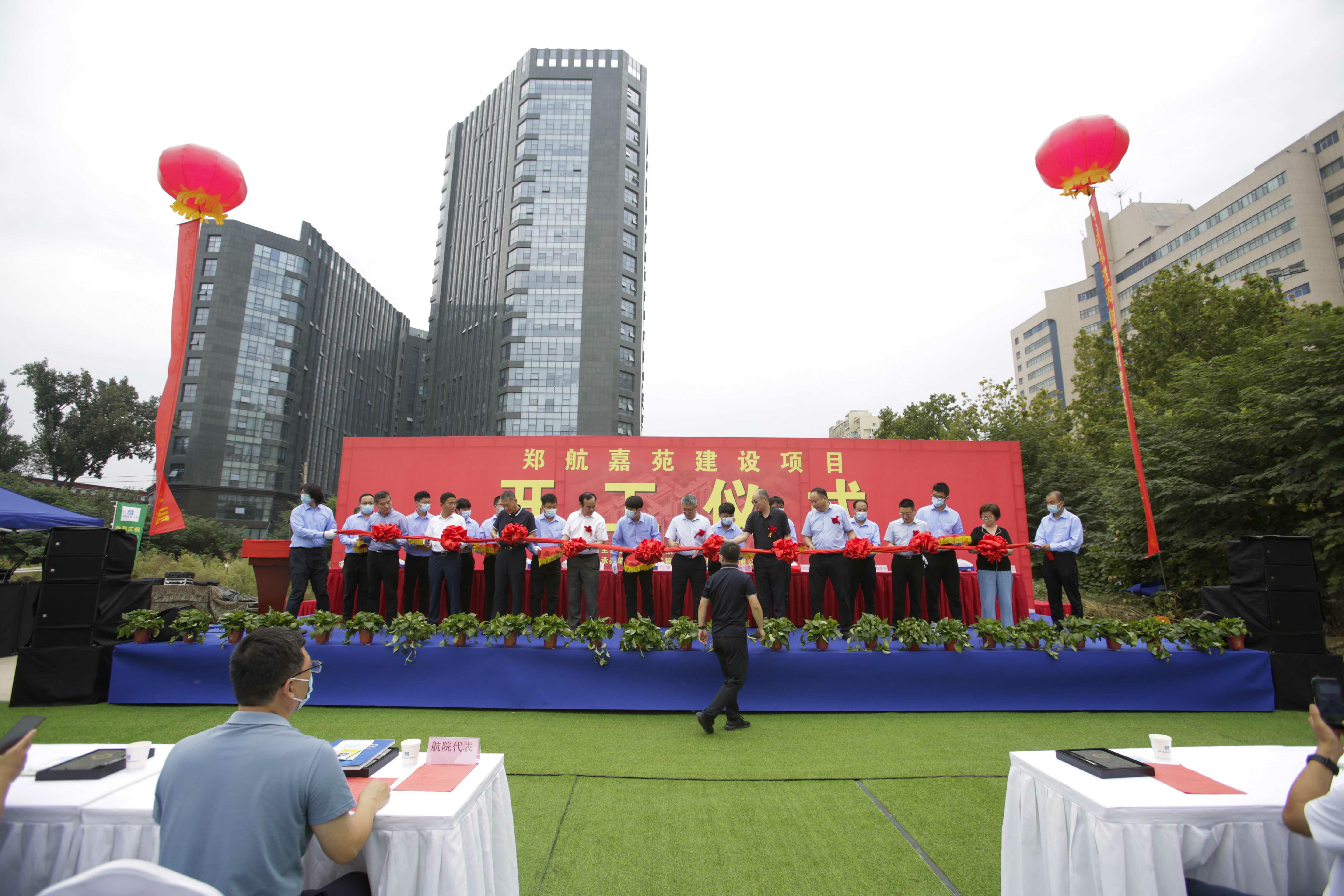 刘代军宣布:“郑航嘉苑”建设项目正式开工建设。出席仪式的校领导和参建单位负责人共同为“郑航嘉苑”建设项目开工剪彩。