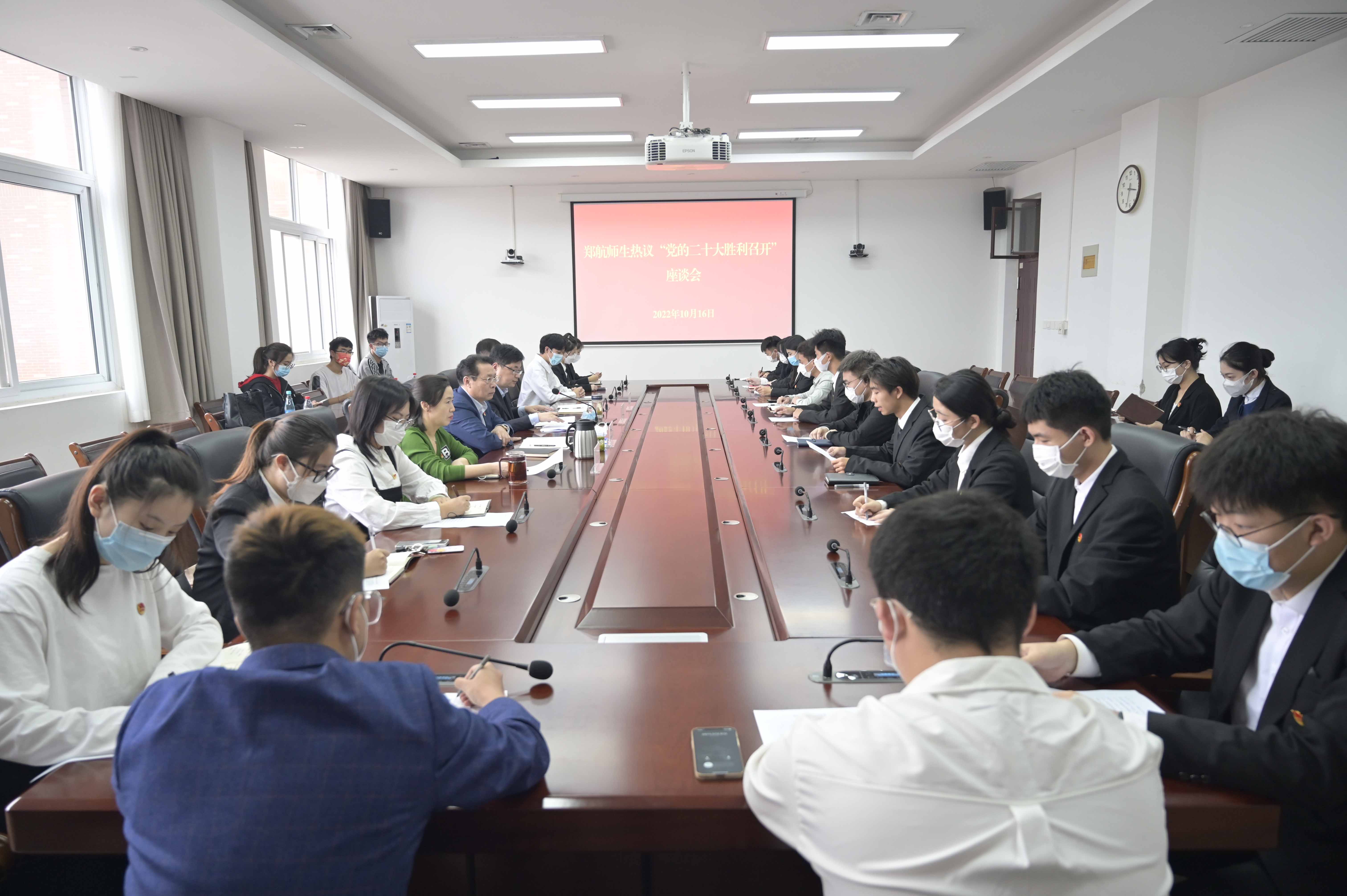 10月16日上午,举世瞩目的中国共产党第二十次全国代表大会在人民大会堂开幕。习近平代表第十九届中央委员会向大会作报告。16日下午,我校第一时间组织召开“学习二十大 永远跟党走”郑航师生座谈会。副校长王继东和党委宣传部、党委学工部、校团委主要负责人出席会议,与各学院学生干部代表、辅导员代表进行座谈。