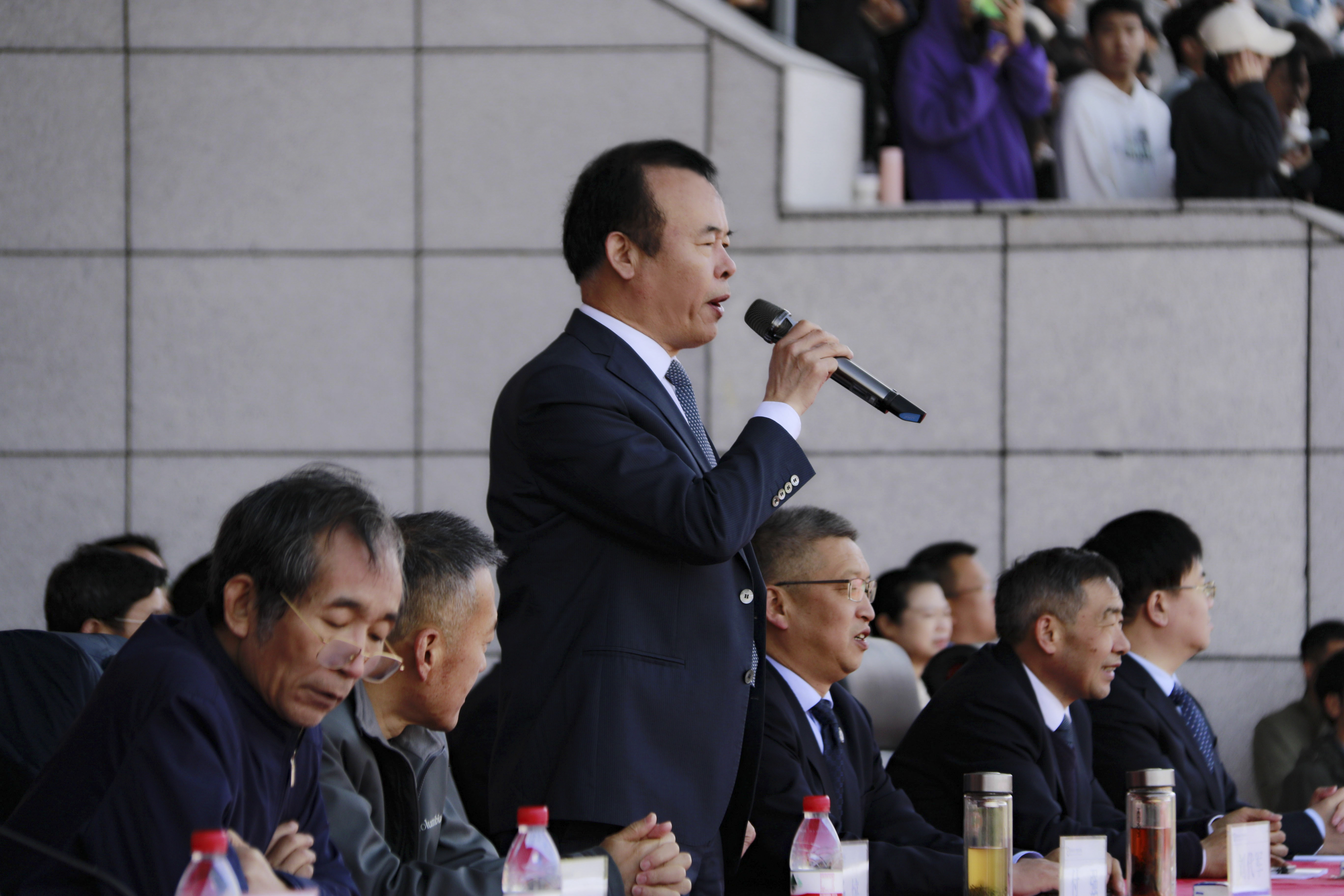 校长刘代军在开幕式致辞中表示,体育承载着国家强盛、民族振兴的梦想。高校体育工作是落实“立德树人”根本任务的重要载体,是培养德智体美劳全面发展的社会主义建设者和接班人的重要途径。长期以来,我校深入贯彻落实习近平总书记关于体育工作的重要指示精神,体育事业取得长足进步。刘代军希望,全校师生要发扬“更快、更高、更强、更团结”的奥林匹克精神,赛出风格,赛出水平,并把在运动赛场上迸发出的迎难而上、敢于超越的奋斗精神融于岗位,转化为学校建设高水平航空航天大学的磅礴力量。