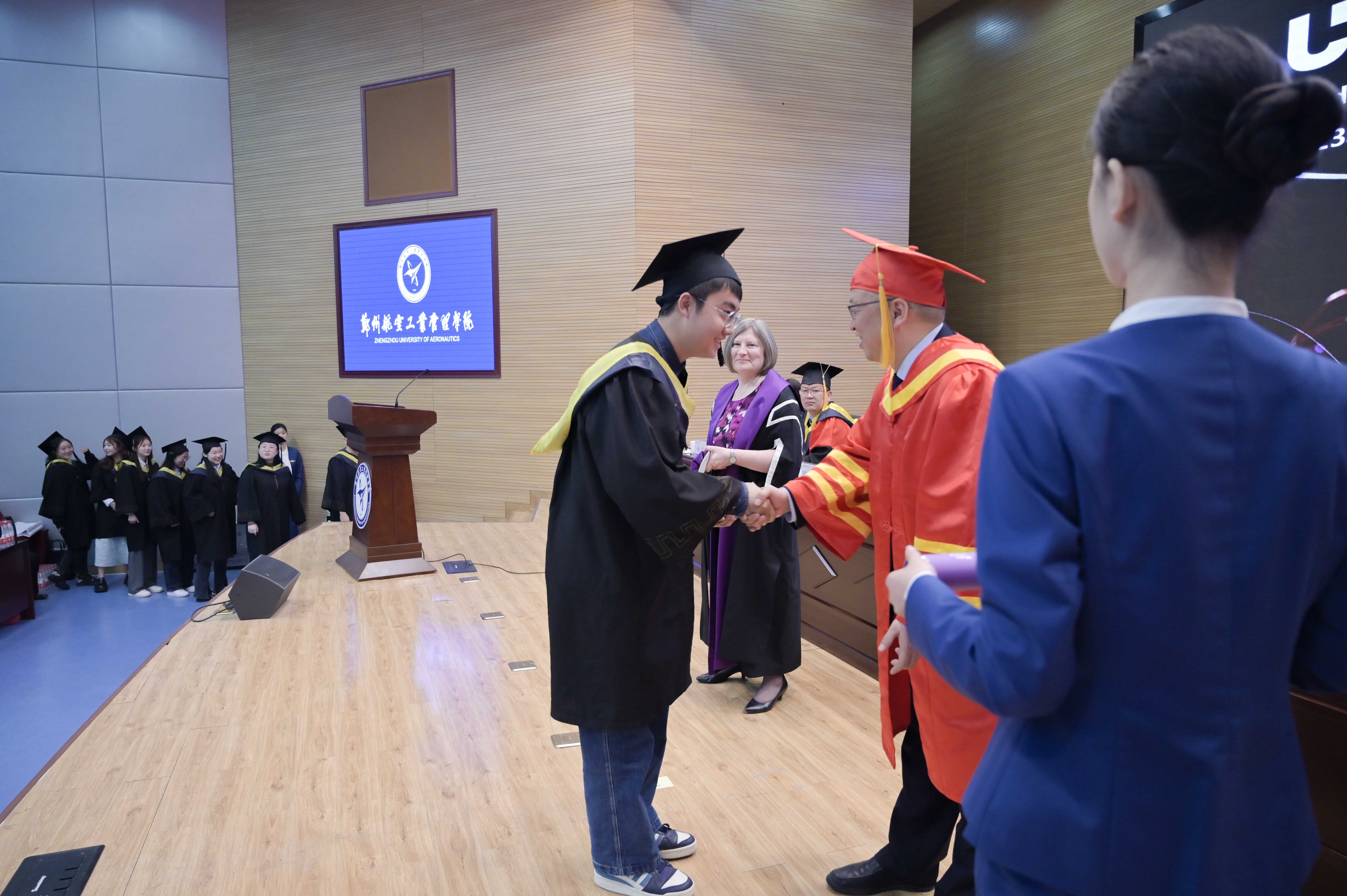 校长刘代军出席典礼并致辞,与韦罗妮卡·林奇共同为获得英方学位的79名学生授予学位,为王晓璐、张昕喆和李冬旭3位优秀教师颁发证书和奖杯。