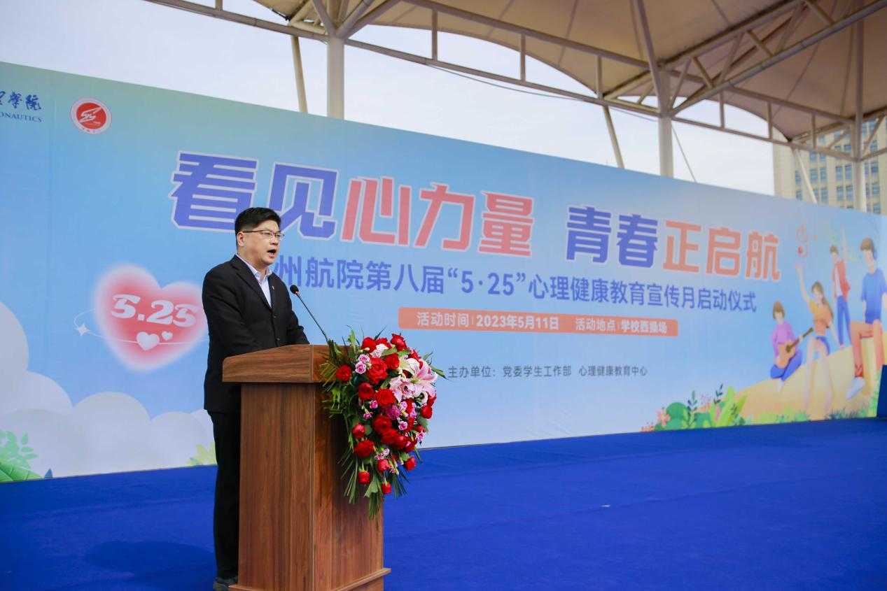 党委宣传部部长尹朝晖在致辞中指出,心理健康教育工作在校党委全面领导下,坚持立德树人根本任务,坚持以学生为中心,采取多种形式开展学生心理健康教育工作,取得显著成效。他希望,“同学们能以豁达之心,璀璨生命,学会宽心,懂得包容;以不凡胆识,勇毅奋进,不弃微末,不舍寸功;以执着热血,奔赴热爱,只争朝夕,不负韶华。同时,同学们要积极参加到心理健康教育宣传月各项活动中,关注自身心理健康,在活动中获得成长和感悟,收获健康幸福和阳光向上的自我。”