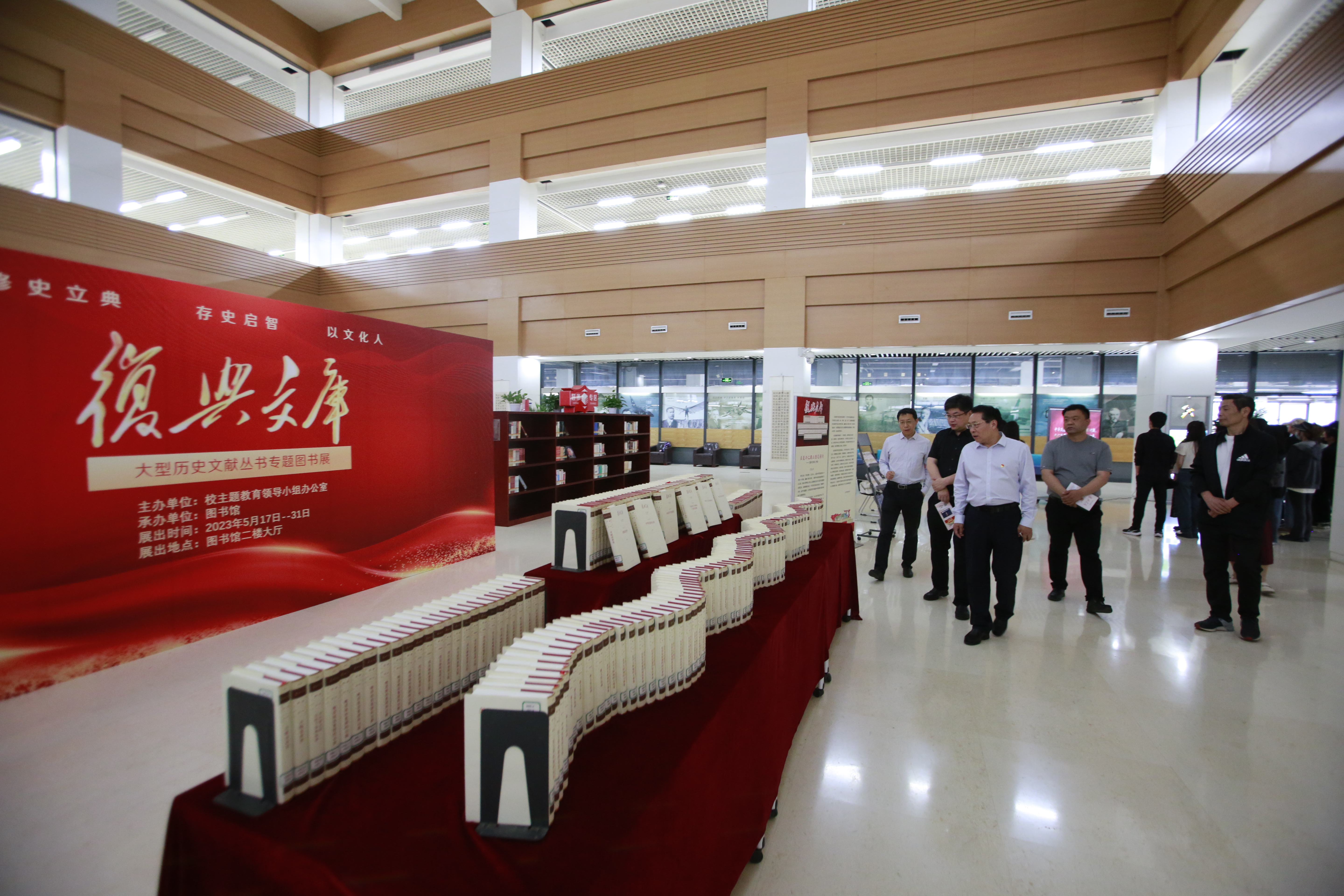 据了解,《复兴文库》是由习近平总书记作序的大型历史文献丛书,编纂《复兴文库》是党中央批准实施的重大文化工程。此次《复兴文库》专题图书展由校主题教育领导小组办公室主办、图书馆承办,展出《复兴文库》系列丛书第一至第三编,共37卷195册,6190万字。