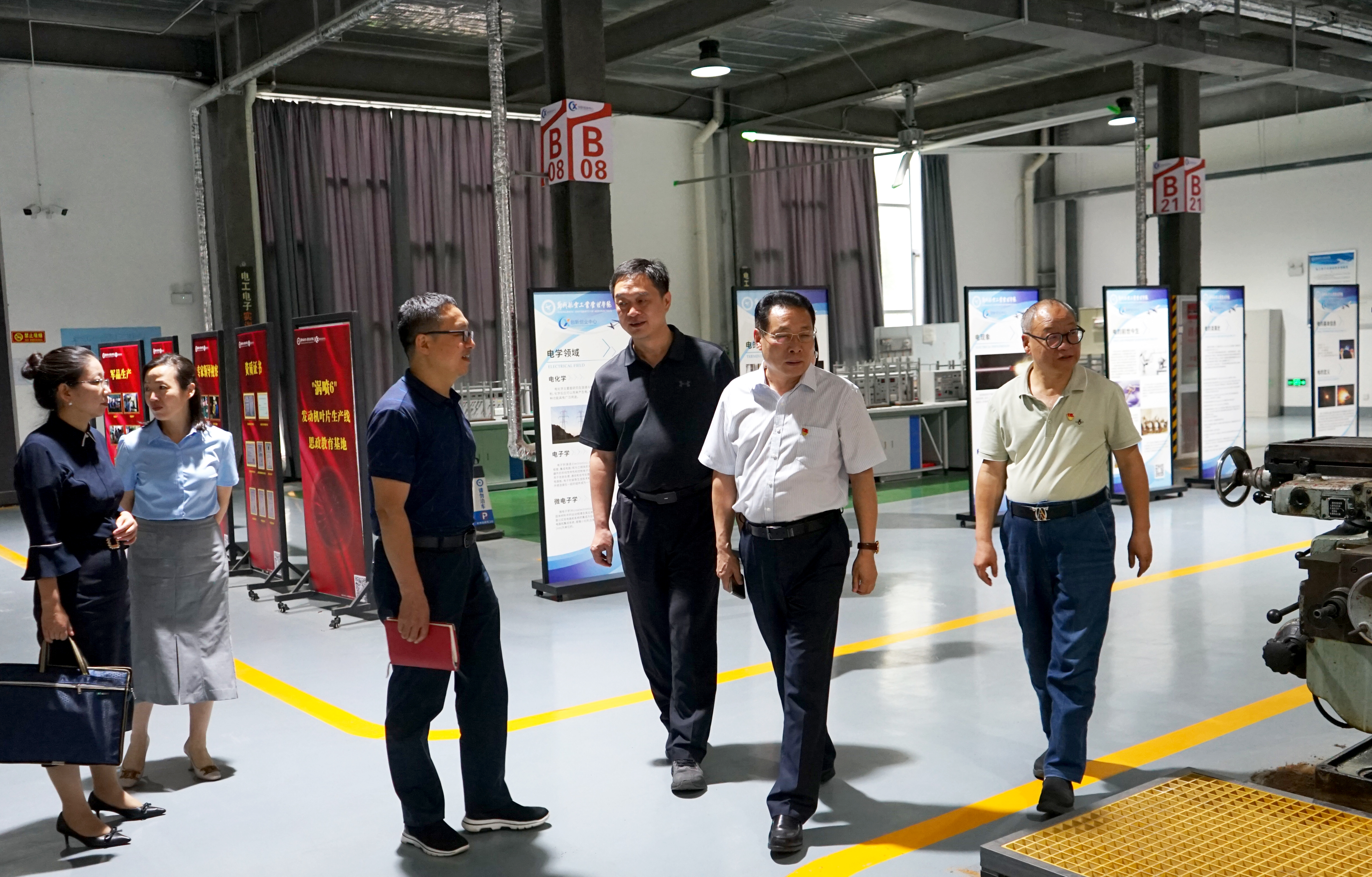 在创新创业中心,王继东听取该中心关于工程实训、创新创业教育等开展情况、存在问题及今后工作思路与举措,围绕创新创业课程建设、学科竞赛、师资队伍建设、实训设备更新、校企合作等,深入开展沟通交流。