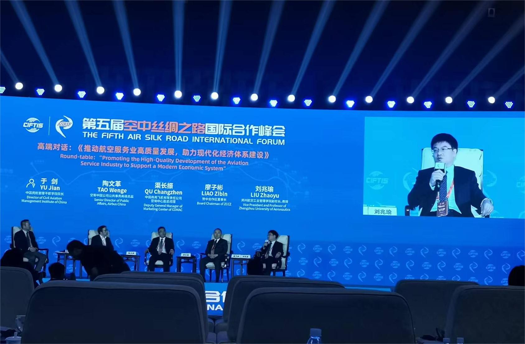 刘兆瑜作为高校代表参加“推动航空服务业高质量发展,助力现代化经济体系建设”高端对话。针对“如何发挥高校在临空经济发展、临空经济现代产业体系构建中的作用”,刘兆瑜从认清国内临空经济形势、优化学科专业结构、强化理论创新策源功能等方面进行阐释。他指出,临空经济区作为地区经济发展“增长极”,逐渐成为各省市战略性新兴产业的“集聚地”。郑州航空工业管理学院作为一所航空特色鲜明的全日制普通本科院校,持续提升服务航空产业和地方经济发展的能力。学校将依据民航强国战略要求,按照河南航空经济发展、郑州航空港经济综合实验区建设的省委、省政府重大决策部署,优化学科专业结构与布局,强化理论创新策源功能,为临空经济高质量发展输送特色人才,提供智力支撑。