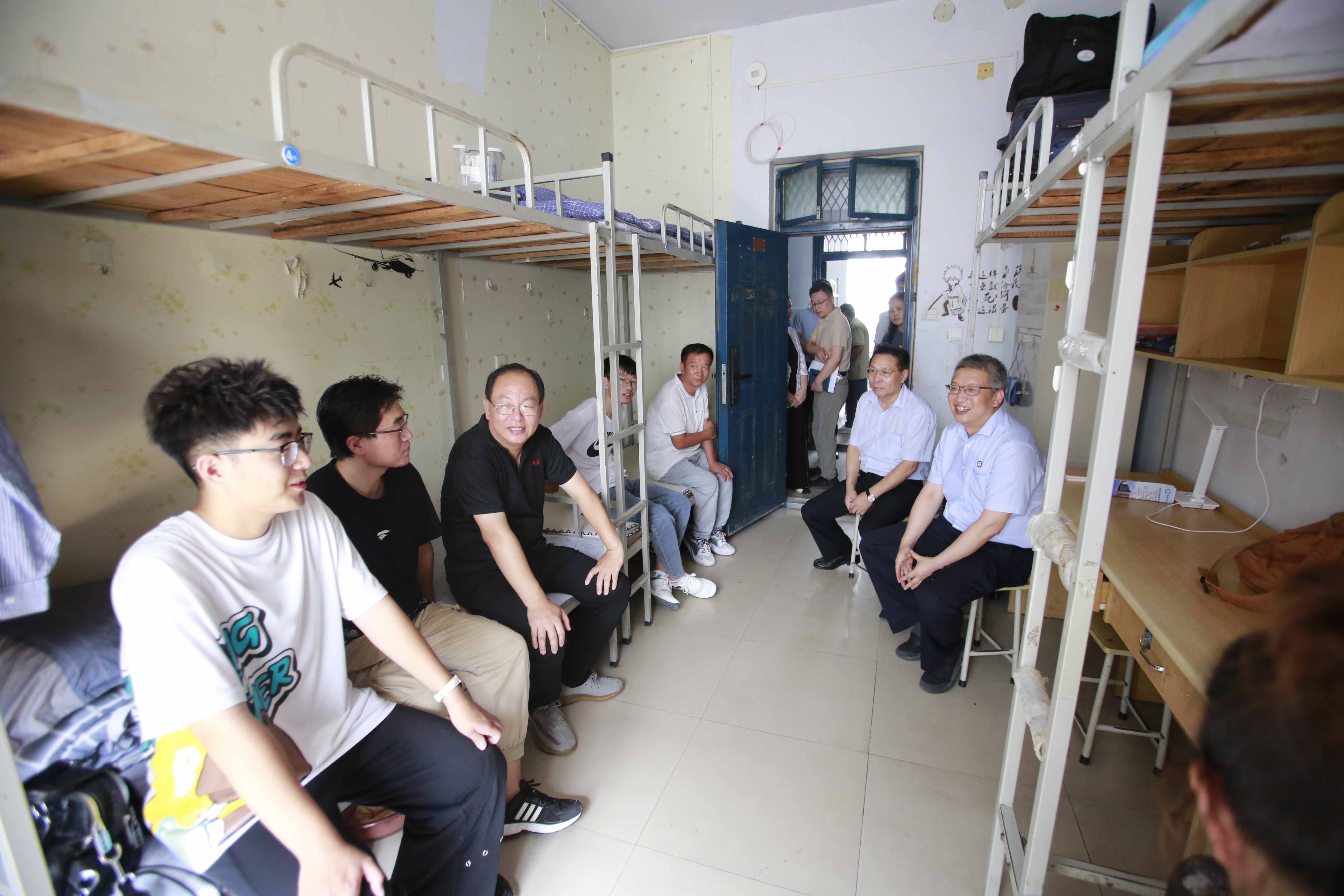 在新生宿舍,刘代军与新生及家长代表围坐一圈深入交流,向新生和家长信任郑州航院、选择郑州航院表示感谢。他说,学校坚持育人为本,始终将学生放在第一位。学校将竭尽全力为同学们提供良好的学习生活环境,最大程度地帮助学生解决在校期间遇到的问题,希望同学们在新的求学阶段能立足自身、志存高远、追求卓越、全面发展,以郑航为基,努力成为社会栋梁。谈到大学阶段学习生活,刘代军指出,要抓住本科四年的人生塑造关键期,在学习实践中健全自己的世界观、人生观、价值观。古语有云“与善人居,如入芝兰之室”,希望同学间相互包容,相互督促,要善于沟通交流,还要养成锻炼身体的好习惯。