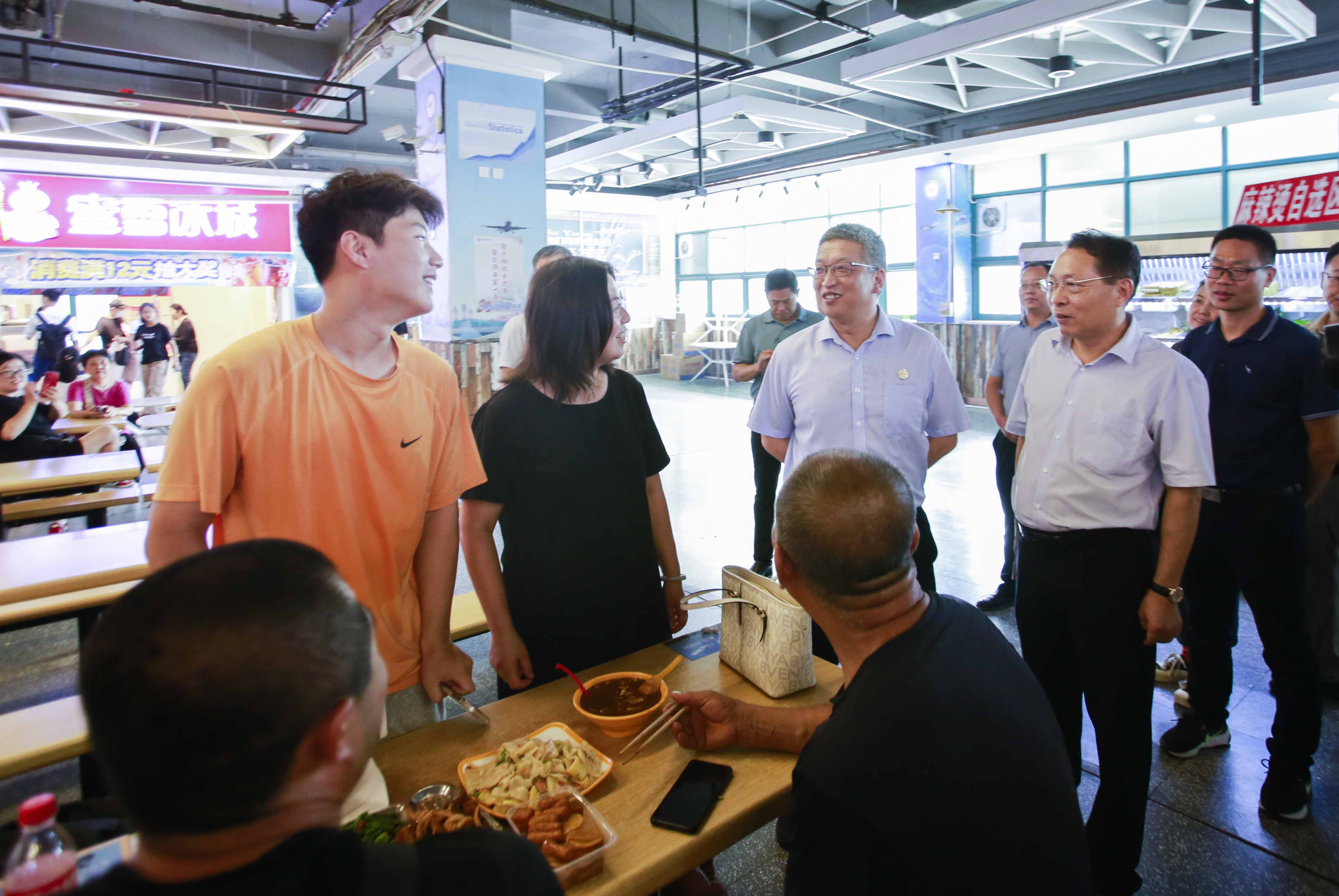在西苑餐厅门口,校领导通过迎新展板详细了解餐厅食品安全质检、学生协同管理和管理育人等工作情况。餐厅一楼走访中,后勤管理处相关负责人向校领导详细汇报了迎新期间各餐厅供餐、迎新餐券配发等工作情况。“饭吃着还合口吧?”“对学校餐厅还满意吗?”走访中遇到正在用餐的新生和家长,刘代军亲切地询问并听取他们的用餐感受。刘代军指出,要提高餐厅供餐标准,力求做到餐品健康安全、多样可口,通过高质量的用餐服务给新生和家长留下良好的第一印象,让新生家长对学生在校生活安心放心。