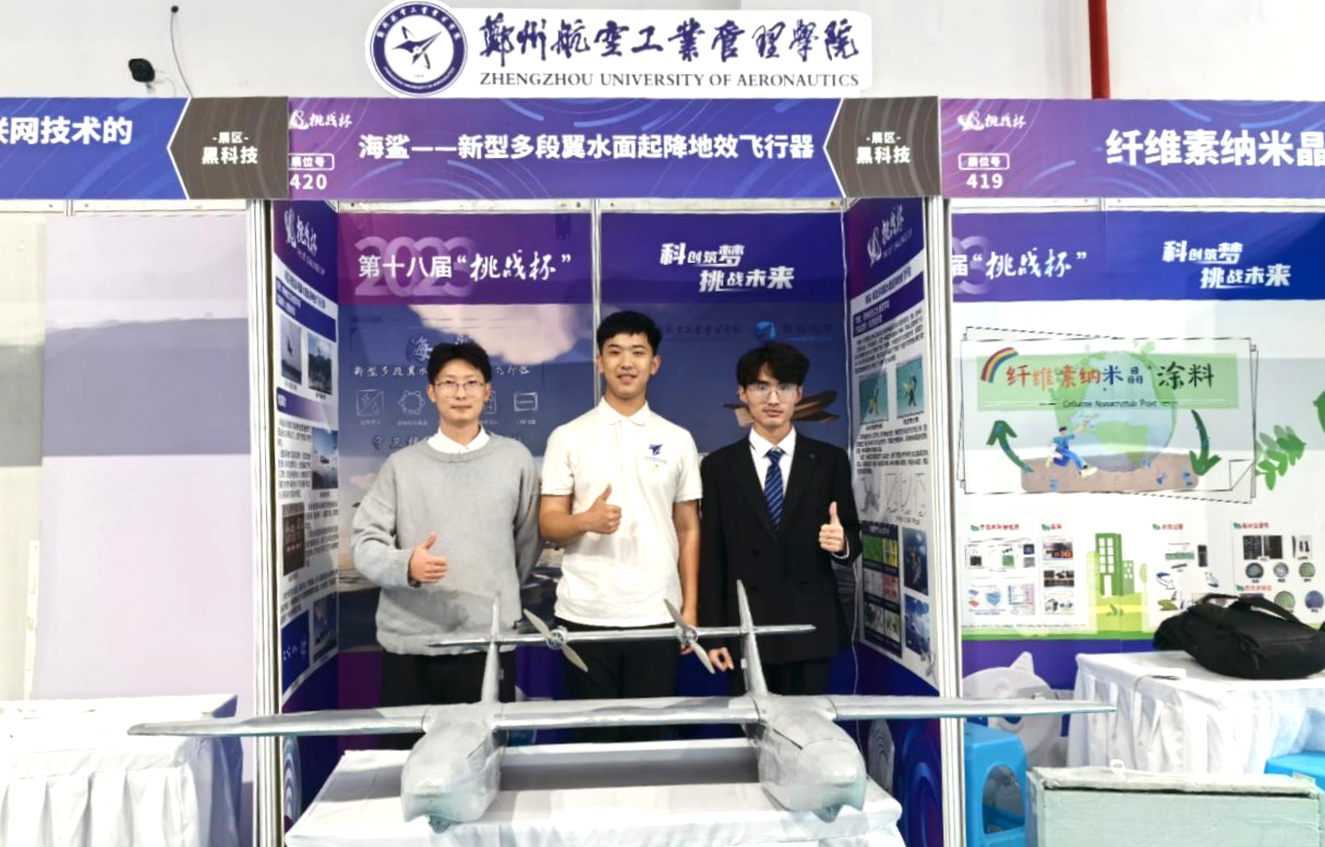 荣获第十八届“挑战杯”全国“黑科技”展示活动最高奖“星系级”作品奖的参赛作品《海鲨——新型多段翼水面起降地效飞行器》,是基于满足岛屿运载与扫雷反潜需求,由我校“智创未来”团队设计的全球首款新型多段翼水面起降地效飞行器——海鲨。这一飞行器创造性地采用船身式机身、可变翼面、多段地效翼设计,具备升力高、载重大、航程远等诸多优势,可运用于低空隐身巡查、物资运输、无人机集群突防等诸多应用场景,为我国“交通兴国”战略提供全新解决方案。在“挑战杯”终审决赛闭幕式上,“智创未来”团队作为获奖团队代表上台领奖,同时作现场展示,还受邀参加“黑科技”展示活动“青年与海·强国有我”海洋主题作品展和第二届“一带一路”青年沿线城市国际会“创新发展·青年先行”作品展,为学校赢得广泛赞誉。