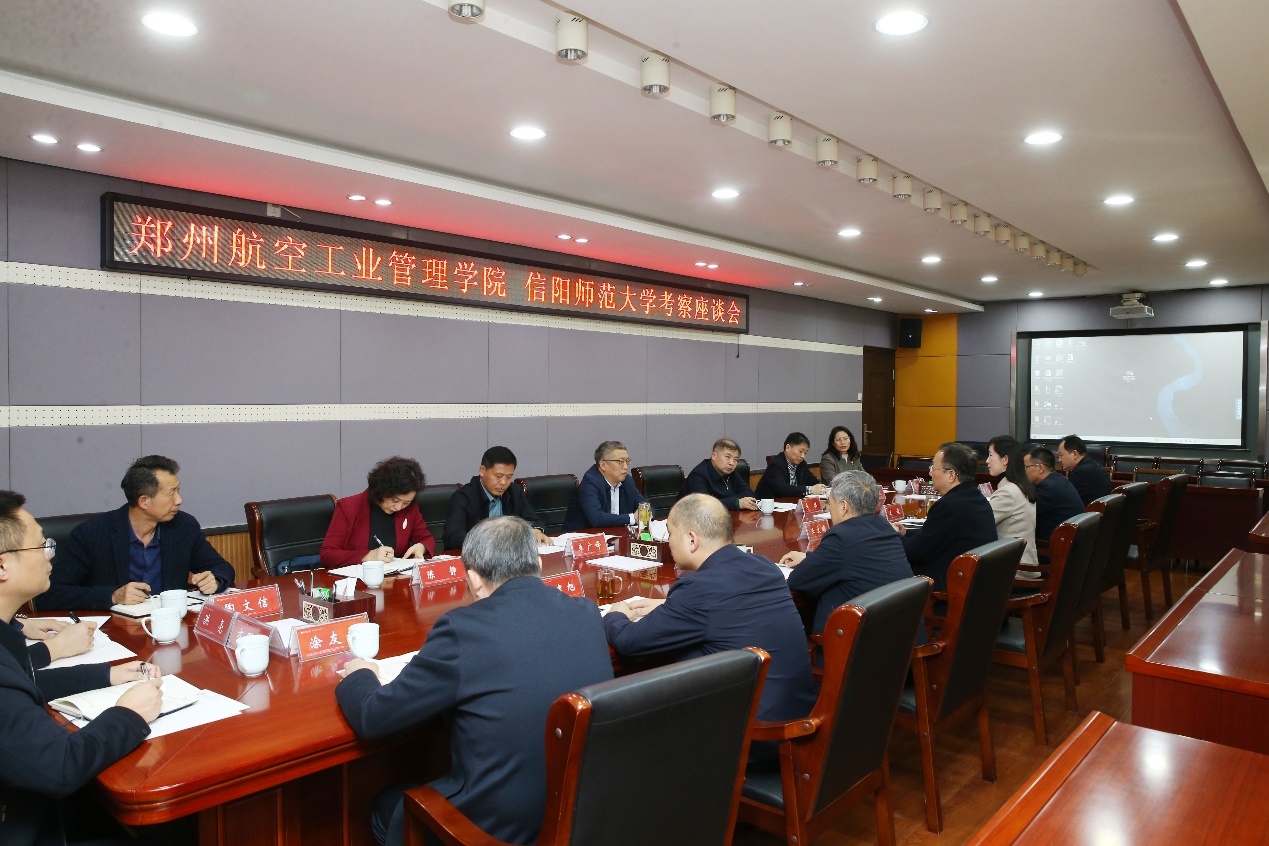 11月7日,党委书记、校长刘代军带队赴信阳师范大学考察交流,副校长李捷、李广锋陪同考察。信阳师范大学党委书记王文鹏、校长李俊、副校长王娟出席座谈交流会。