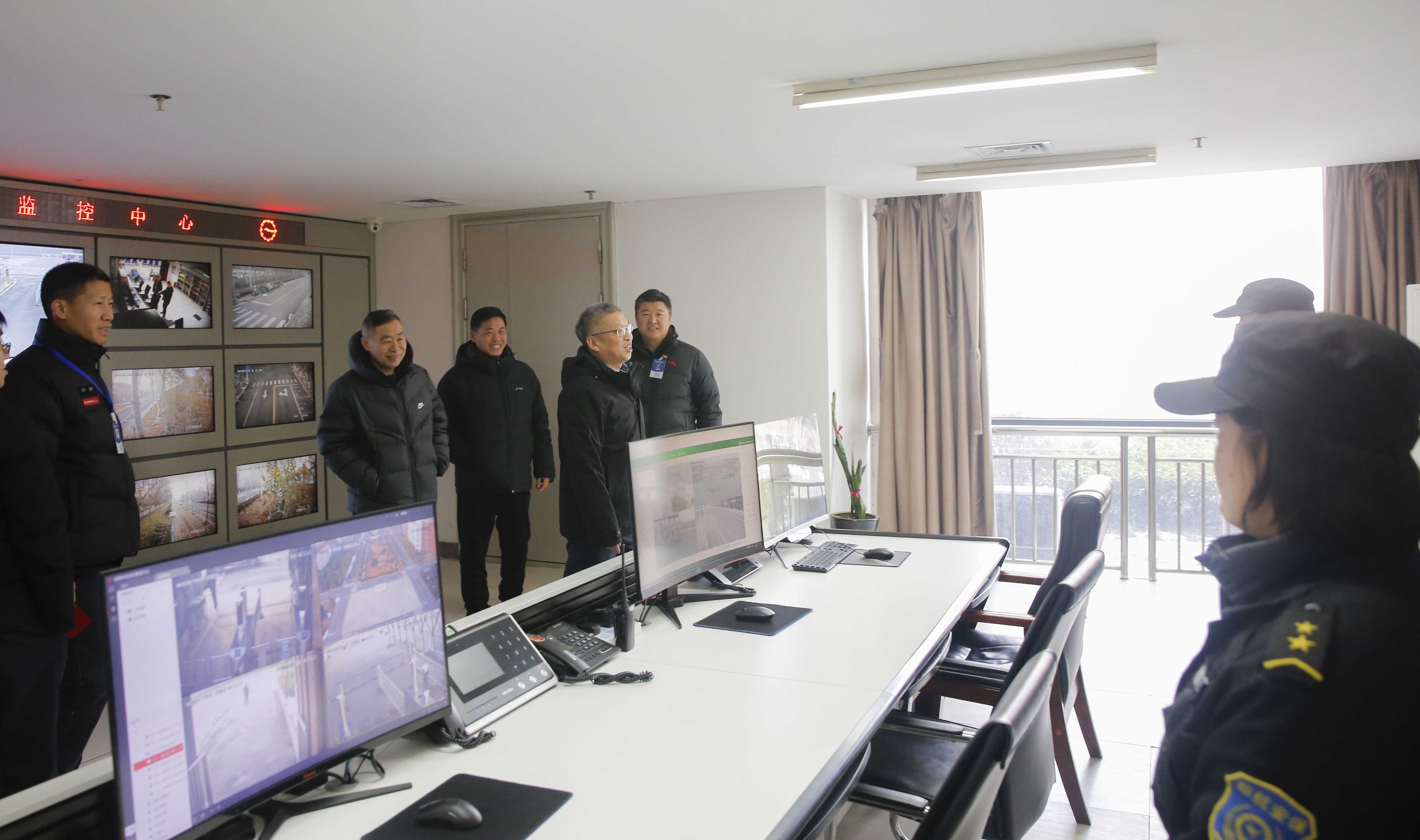 在校园监控室和消防控制室,校领导给坚守岗位的工作人员拜年,详细了解了校园安全监测情况和突发情况应急预案。春节期间,我校1000余个监控设备24小时无间隔作业,通过机控与人控、日常巡检与视频监控的有机结合,对学校火灾报警信息与设备运行状态信息实行远程集中监控,确保校园安全稳定。校领导强调,安全稳定工作是学校高质量发展的“保障线”,也是学校办学的底线。要求在岗值班人员增强“严防死守”意识,切实负起责任,结合今冬明春的安全形势,提前研判安全风险,加强重点部位的风险隐患排查,坚决筑牢校园安全防线。
