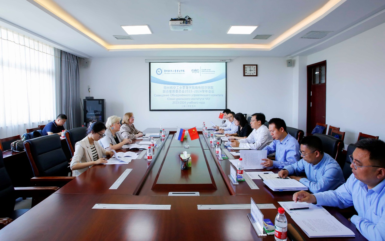5月7日,我校与俄罗斯南乌拉尔国立大学召开2023-2024学年中外合作办学机构联合管理委员会会议。党委书记、校长刘代军会见俄罗斯南乌拉尔国立大学教学活动副校长波塔波娃•玛丽娜•弗拉基米罗夫娜一行。副校长张聚伟出席会议并讲话。