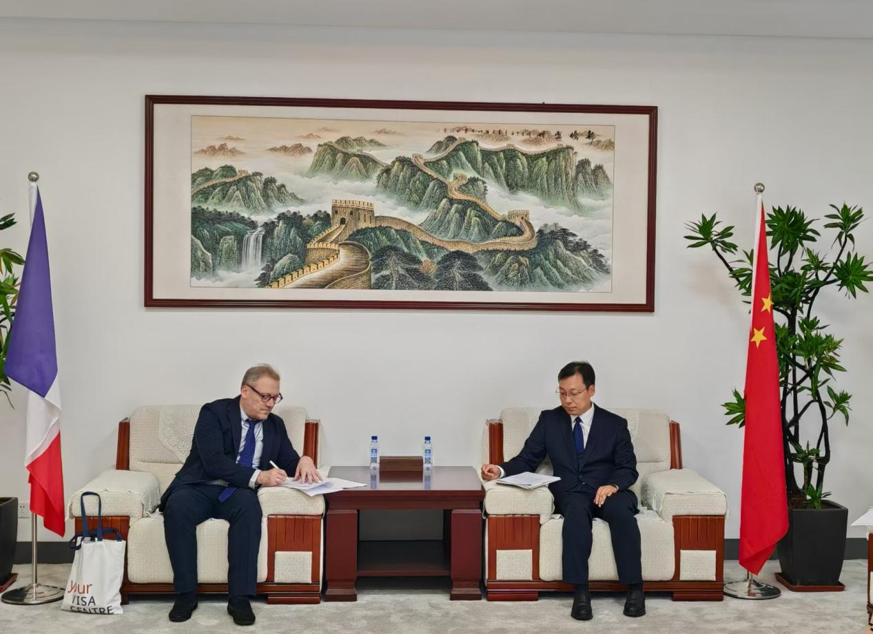 9月11日,法国驻华大使馆一等参赞兼总领事华继永来校访问,副校长张聚伟会见来宾。