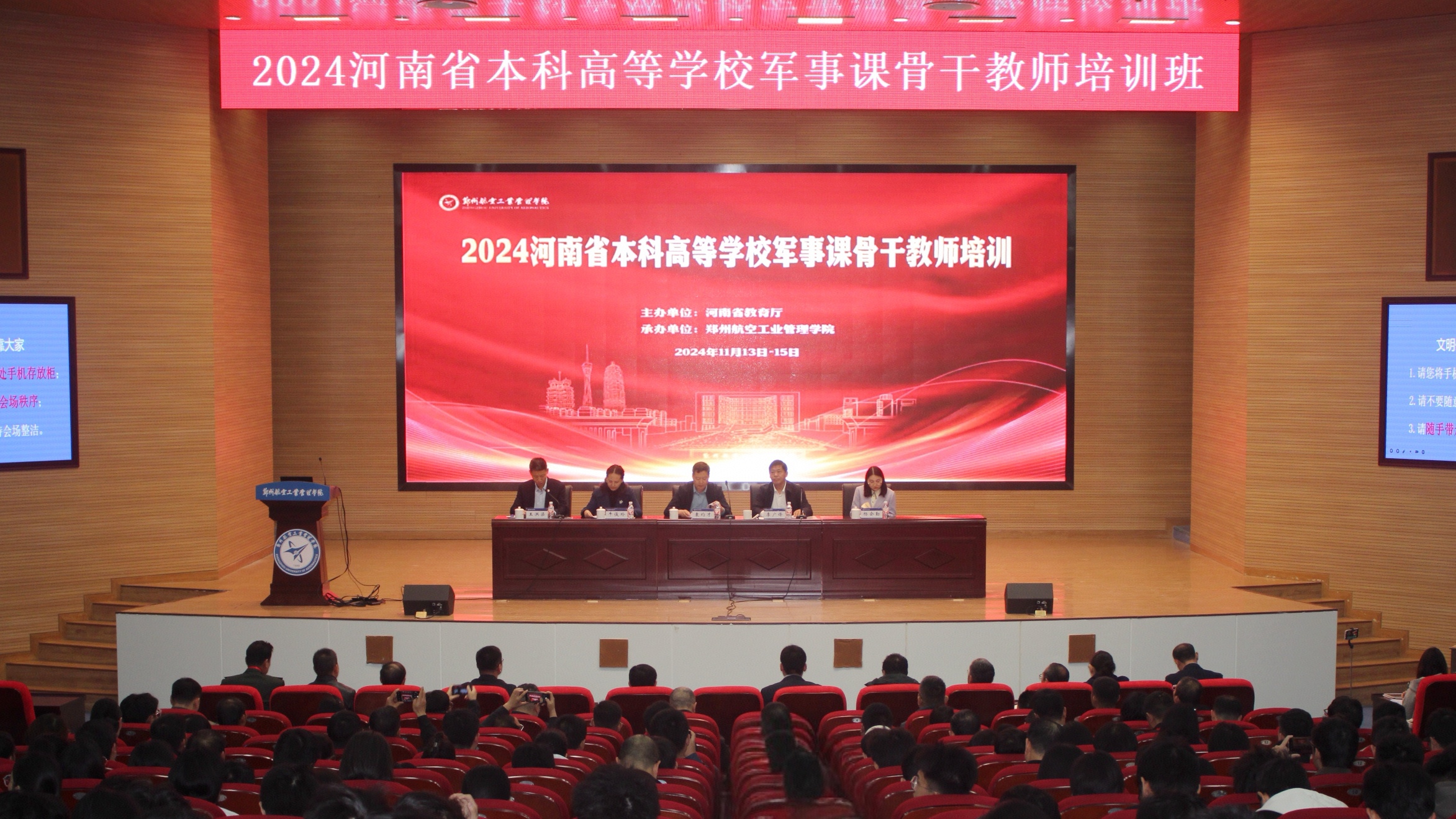 11月14-15日,河南省本科高校军事课骨干教师培训班在我校举办,省教育厅体育卫生艺术教育处二级调研员袁均才出席开班仪式并讲话,副校长李广锋出席开班仪式并致欢迎词。