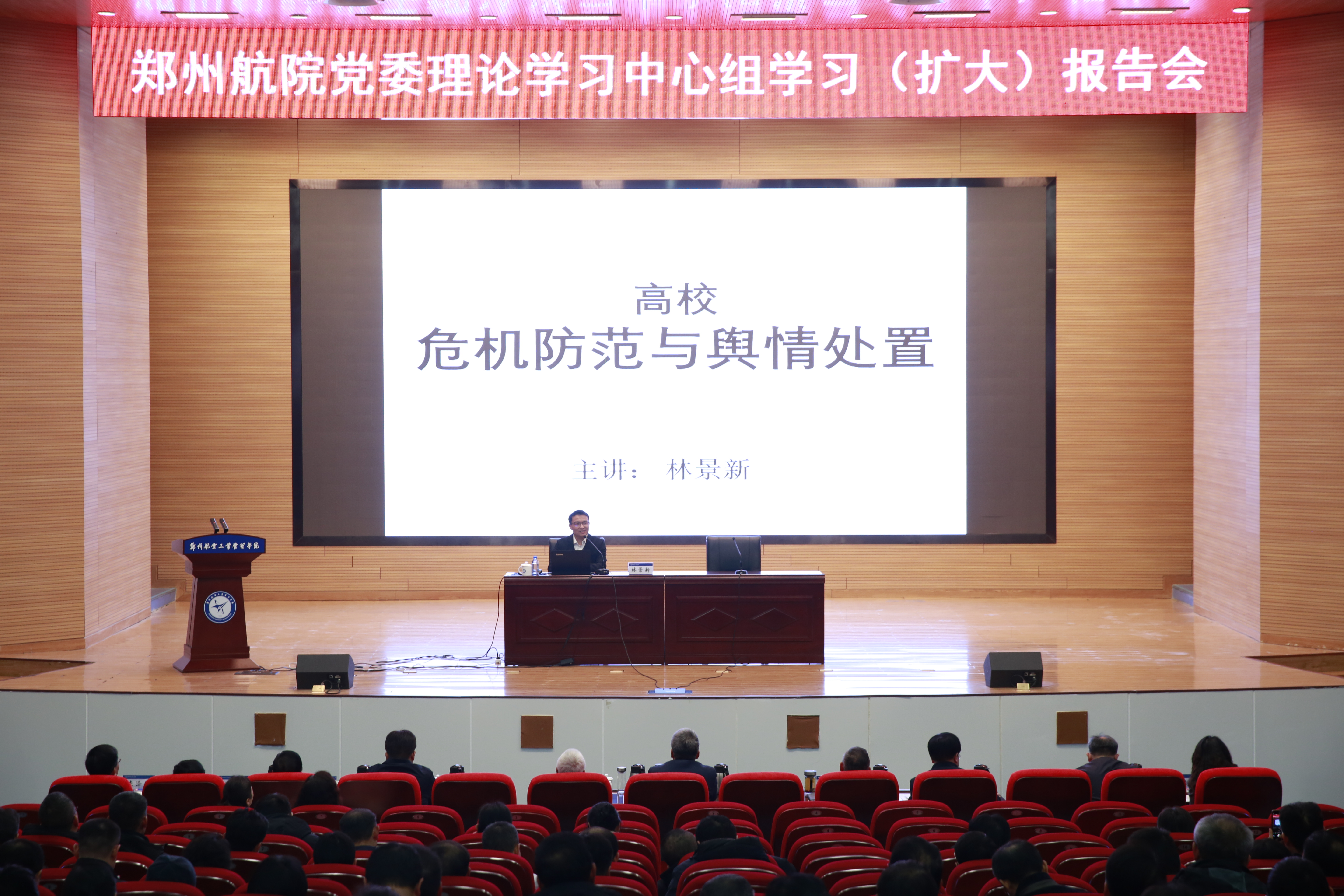 2月14日,我校召开党委理论学习中心组学习(扩大)报告会,邀请华南危机管理研究院副院长林景新作专题报告。全体校领导出席会议。党委书记刘代军作总结讲话。报告会由副校长张聚伟主持。