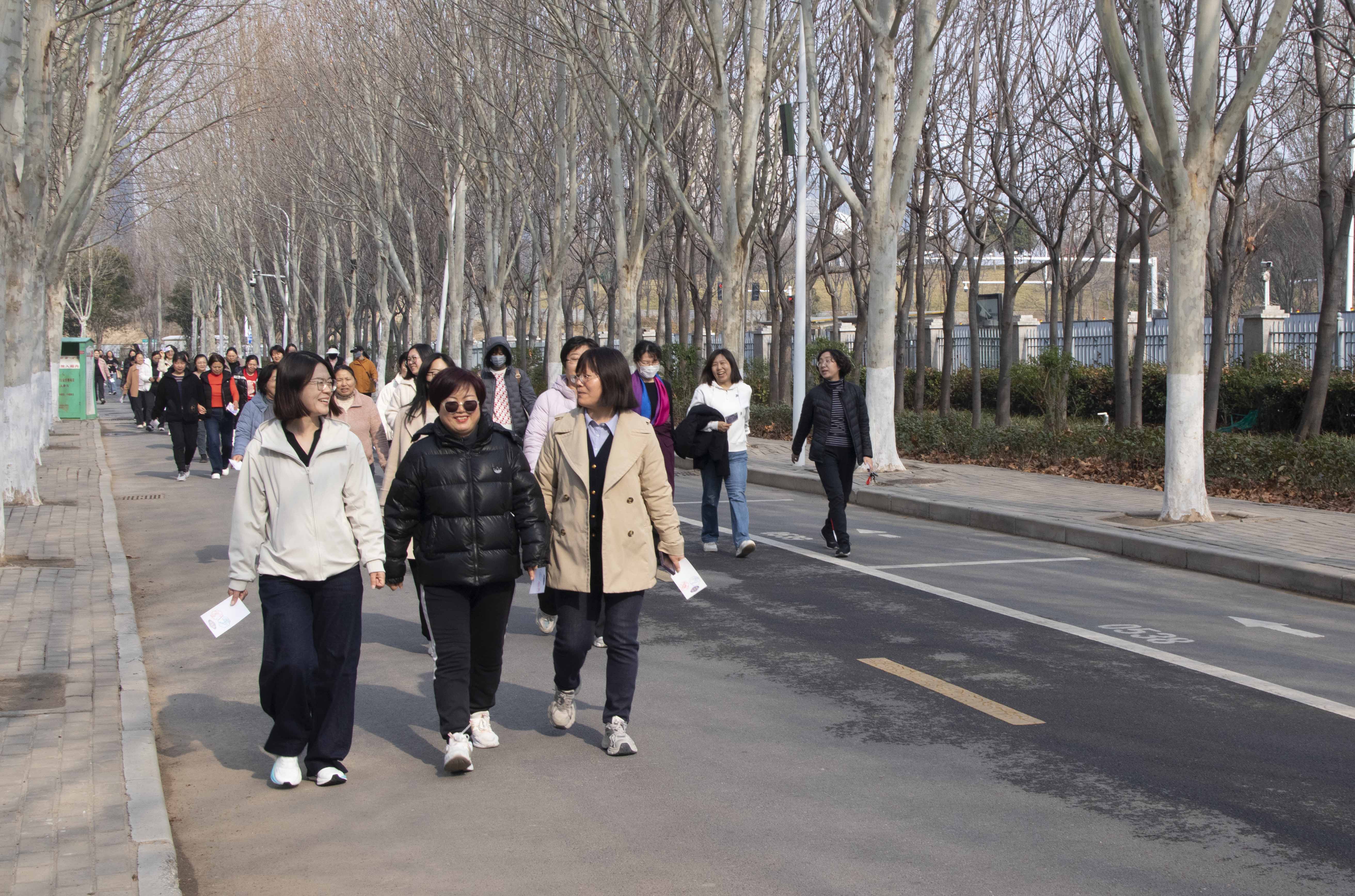 女教职工们精神抖擞、步履轻盈,沿着校园外环路有序行进,开启健步之旅。路线特别设置主题打卡点,将体育锻炼与校园文化熏陶有机融合。参加活动的女教职工表示,“这次活动既锻炼身体又凝聚人心,手捧集齐学校特色印章的节日祝福卡,更感受到强烈的使命担当。”