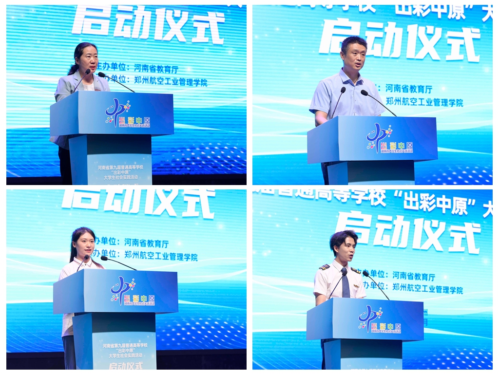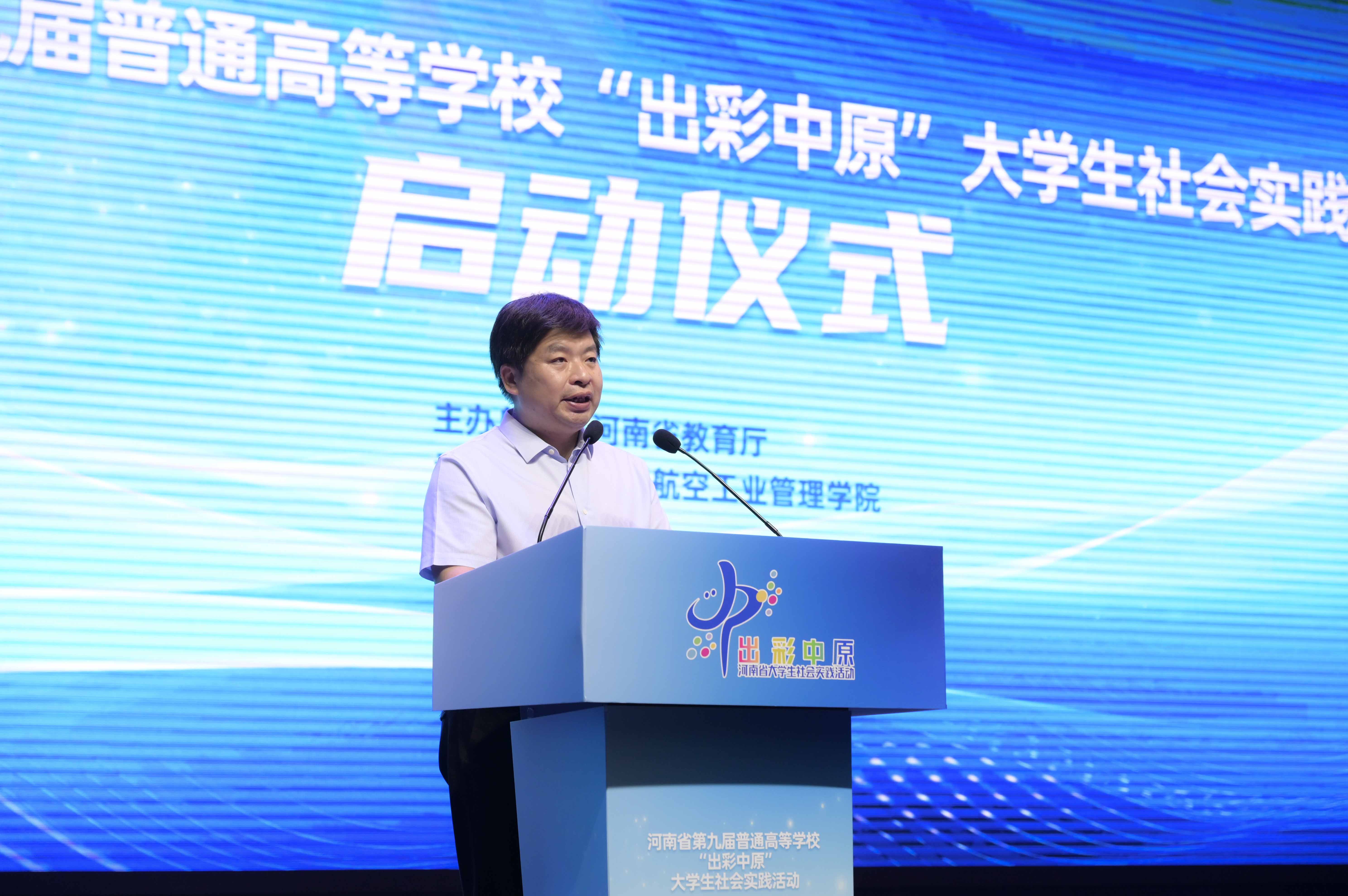 6月20日,由河南省教育厅主办、我校承办的河南省第九届普通高等学校“出彩中原”大学生社会实践活动启动仪式举行。省教育厅党组成员、副厅长,省委教育工委委员吕冰,共青团河南省委二级巡视员王鑫,校党委副书记、工会主席李捷,省教育厅学生处处长李班,共青团河南省委高校部副部长郭翔宇,省教育厅学生处副处长王琰出席启动仪式。全省178所高校社会实践工作部门负责人、9所省级主题社会实践活动承办高校学生处处长、部分驻郑高校师生代表参加仪式。仪式由副校长张聚伟主持。