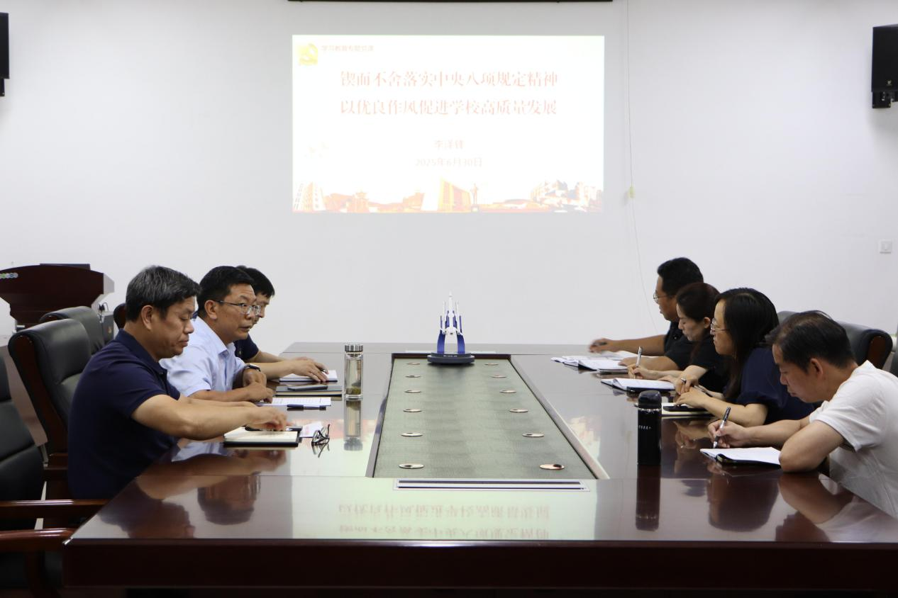 李泽锋带领大家深入学习了习近平总书记关于加强党的作风建设的重要论述,结合高校实际剖析了典型案例,引导教职工深刻领会中央八项规定精神的核心要义和实践要求。李泽锋指出,作风建设不仅是全面从严治党的必然举措,更是营造风清气正校园环境的根本保障。领导干部必须以身作则,发挥模范带头作用,形成上行下效的良好风气。