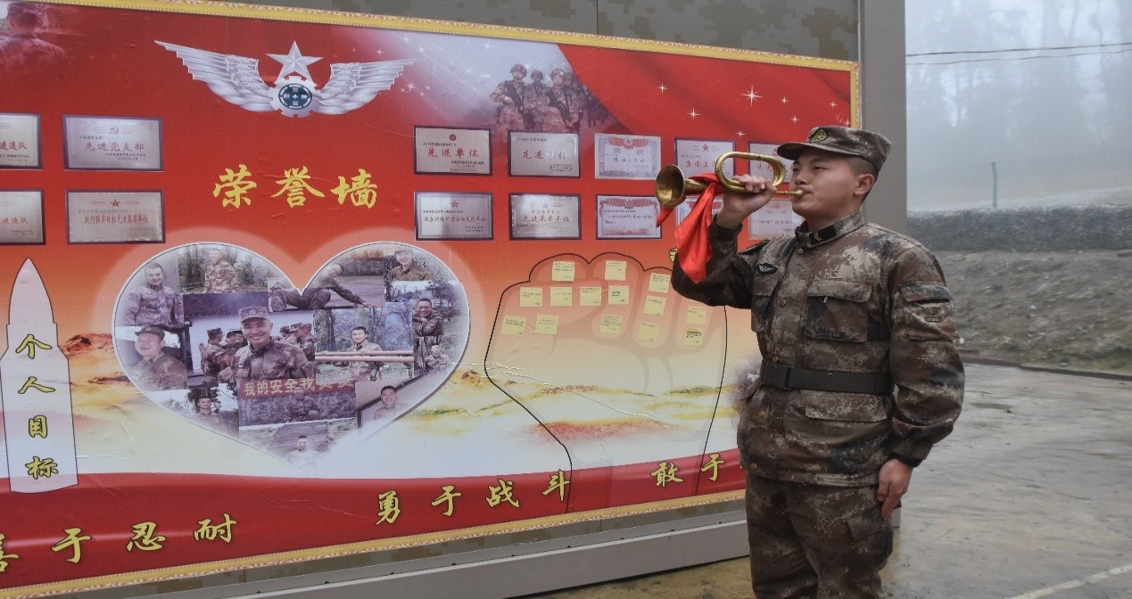 “为了保证一天每一个时间节点准时吹响号音。我每天早上和午休,都要比其他同志提前十分钟起床。尤其是在山上驻训期间,无论刮风下雨,都要确保不出差错,让大家在军号声中开始一天的训练生活。”于旺说。