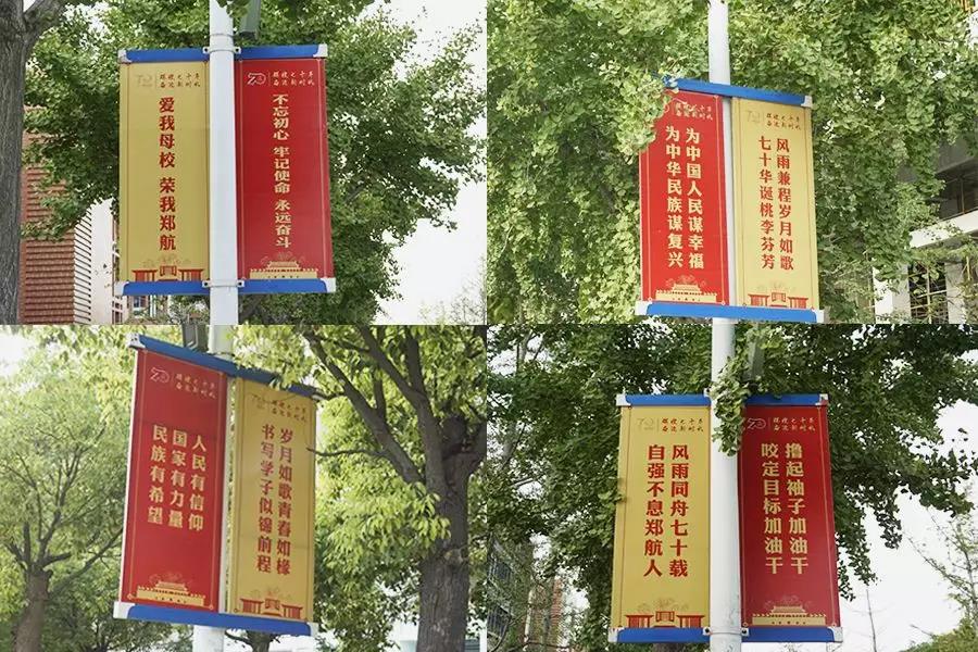 今年恰逢新中国成立70周年,郑航建校70周年,迎新当天彩球随风飘扬,道旗、宣传标语焕然一新,校友办在中心广场摆放 “共叙师生谊同忆校友情”主题展板,向新生及家长介绍郑航历届优秀校友……郑航在用微笑喜迎新生,用新貌惊艳老生。