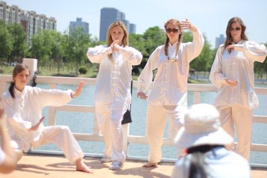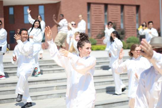 翩若惊鸿行太极,婉若游龙秀春宫。来到了中国,怎能不感受下中国功夫的博大精深。图书馆前,沁湖旁,最是绚烂的光阴。