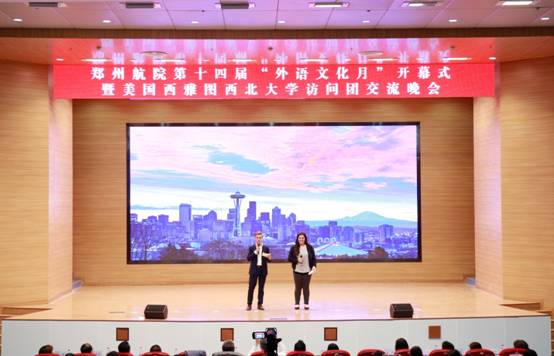 晚上,美国西北大学来访团交流晚会在图书馆第一报告厅举行。一场精彩纷呈的表演拉开帷幕。