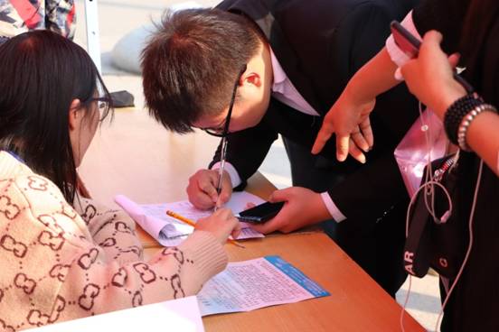 招聘现场井然有序,参聘企业依次到服务台签到并领取校方精心准备的招聘器材进而完成入场。