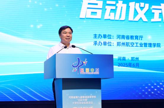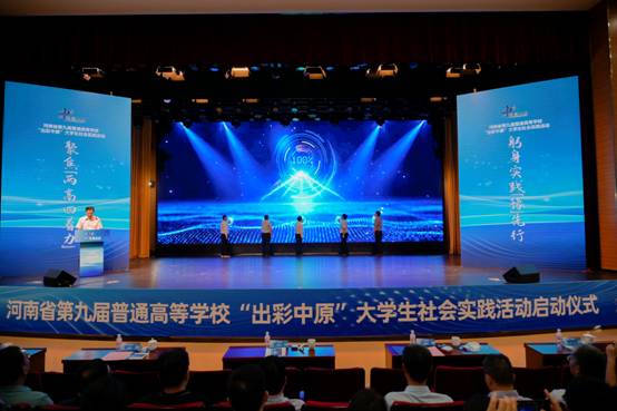 6月20日,由河南省教育厅主办、我校承办的河南省第九届普通高等学校“出彩中原”大学生社会实践活动启动仪式举行。省教育厅党组成员、副厅长,省委教育工委委员吕冰,共青团河南省委二级巡视员王鑫,校党委副书记、工会主席李捷,省教育厅学生处处长李班,共青团河南省委高校部副部长郭翔宇,省教育厅学生处副处长王琰出席启动仪式。全省178所高校社会实践工作部门负责人、9所省级主题社会实践活动承办高校学生处处长、部分驻郑高校师生代表参加仪式。仪式由副校长张聚伟主持。