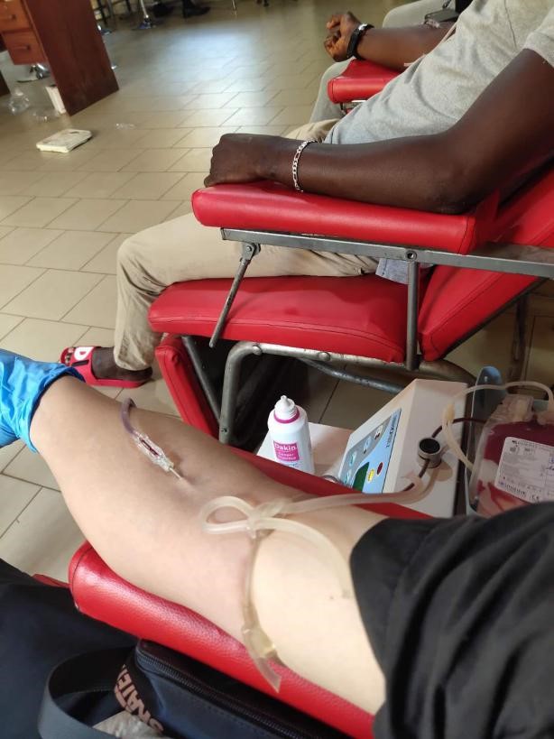 紧急关头,秦建栋和同事宋阳刚、兰晓宇、邢占、关向前,还有当地几内亚员工巴迪,大家都二话没说,跑到抽血室抽血。一汩汩鲜红的血液从手臂上流出,一包接着一包的输血袋被充满,2400cc的鲜血流入侯师傅体内,尽早治愈的希望一点一点地明朗起来。