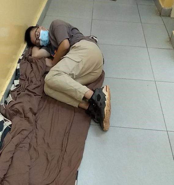 这两天,一张照片在外国语学院教师和校友的朋友圈里传开了。这张照片拍摄于非洲几内亚的中几友好医院,照片上铺着薄被单蜷缩在医院走廊上熟睡的小伙子名叫秦建栋,是我校外国语学院翻译专业2019届的毕业生。