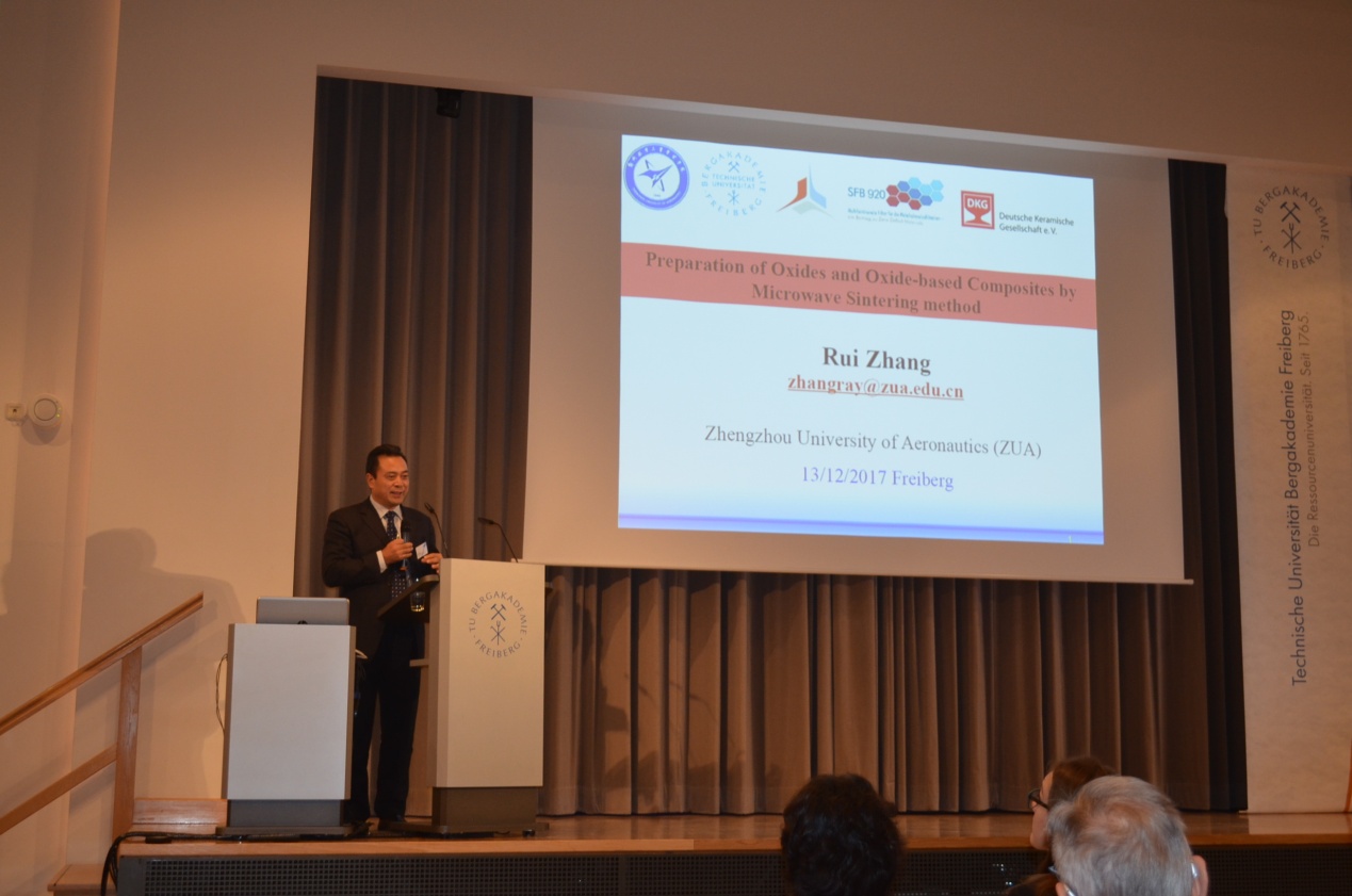 在弗莱贝格工业大举办的“第八届SFB920国际耐火材料论坛”上,张锐教授作为唯一亚洲代表,受邀做题为“Preparation of Oxide-based Composites by Microwave Sintering”的首场报告。