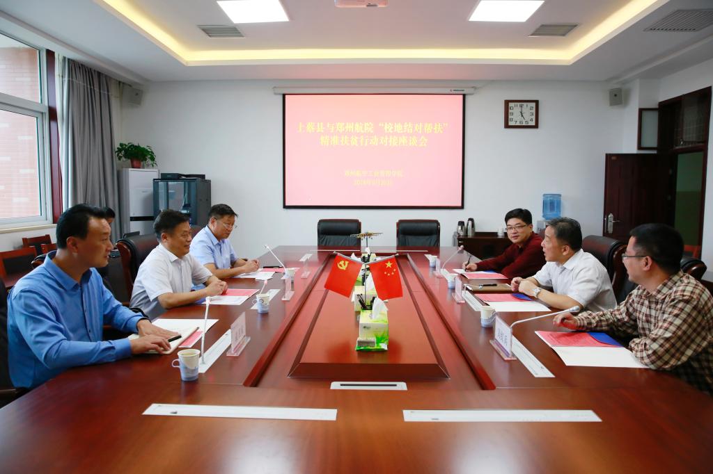 9月20日,驻马店市扶贫办常务副主任杨光、上蔡县人民政府副县长雷鸣、上蔡县扶贫办主任袁卫兵来校对接“校地结对帮扶”精准扶贫工作。党委副书记石培哲出席座谈会,组织部相关负责同志参加会议。