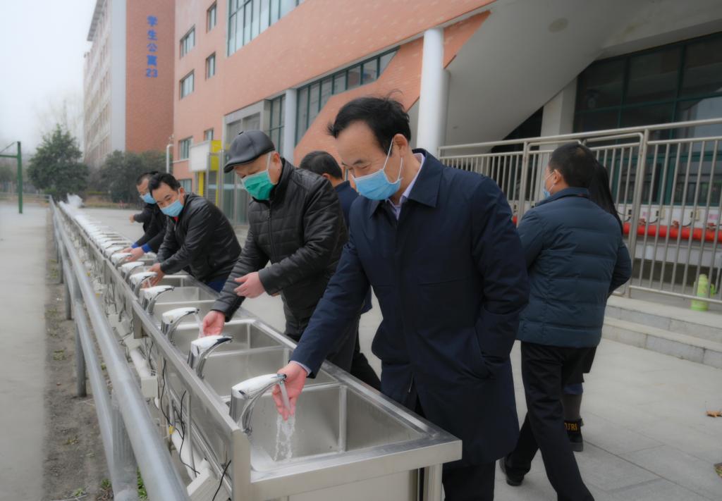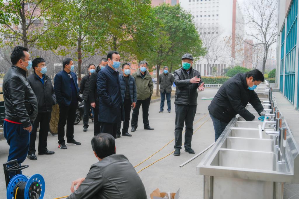 付强一行首先来到龙子湖校区东苑和西苑餐厅,施工人员正在餐厅一楼室外增设不锈钢洗手槽。为了春季开学更加方便教职工及学生就餐前后洗手,学校在龙子湖校区和大学路校区三个餐厅附近增设219套感应式无接触洗手设施,其中龙子湖校区东苑餐厅66套,西苑餐厅99套。付强与正在加紧施工的工作人员面对面交流,仔细询问洗手池进水和排水管道承压能力,实地查看洗手设施同时使用时的水流强弱,要求施工人员综合考虑多种因素,严格按照施工标准科学组织安装,保质保量按时完成项目施工。