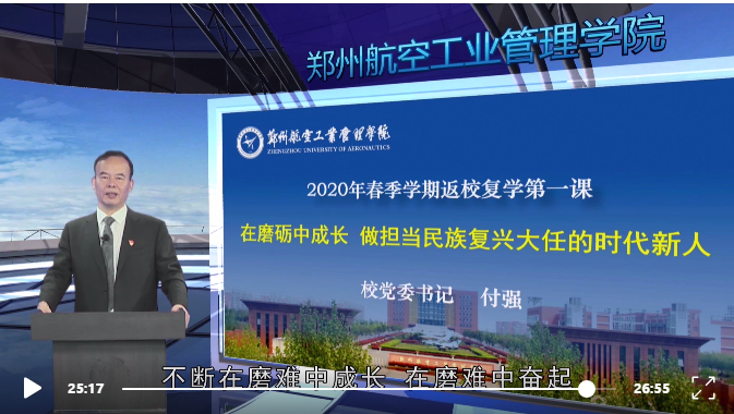 根据河南省教育厅统一部署,5月19日,我校从学校、学院、班级三个层面,通过专家讲解、领导宣讲、专业指导和特色教育活动,以网络平台播放形式,组织全体返校学生同上“返校复学第一课”。