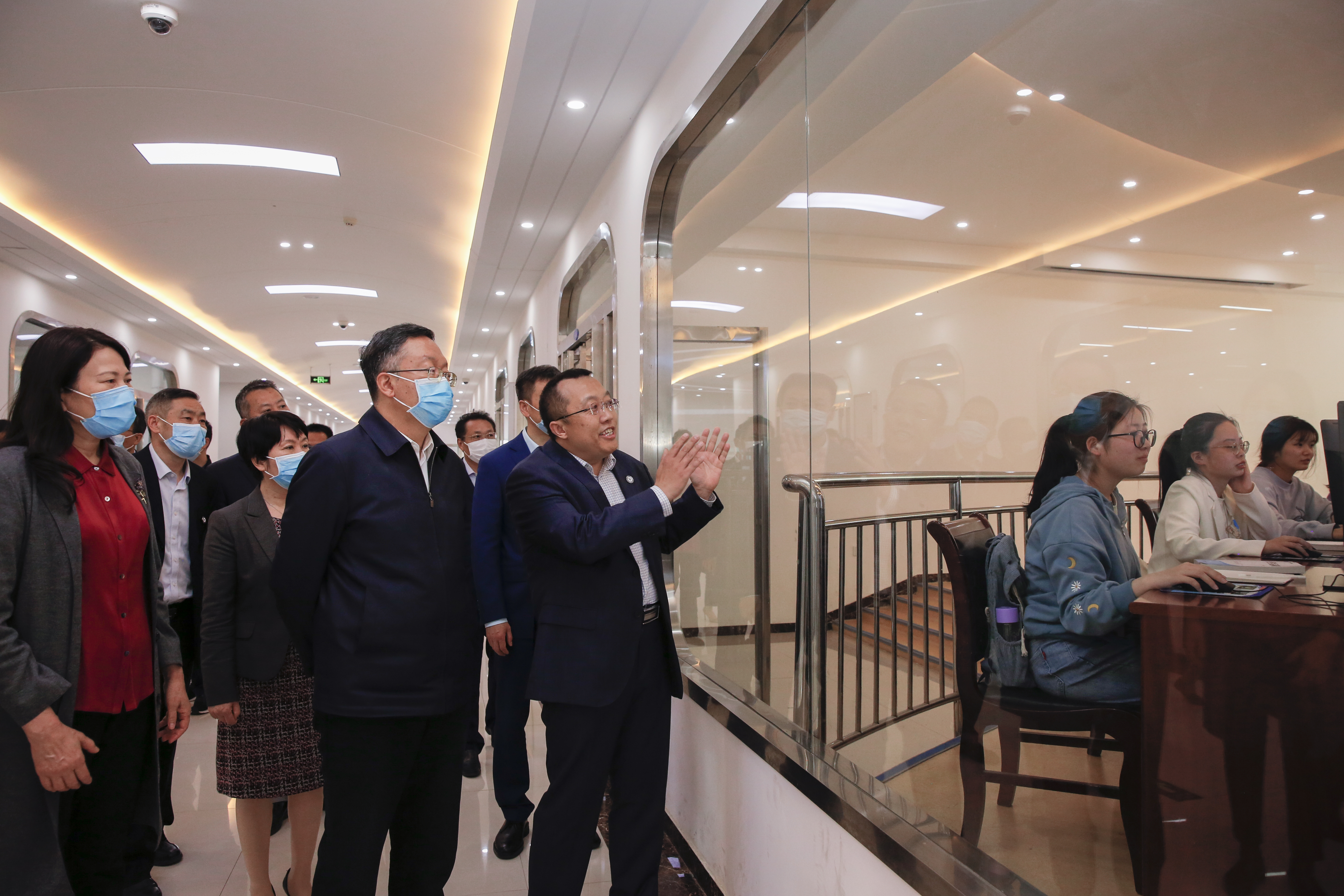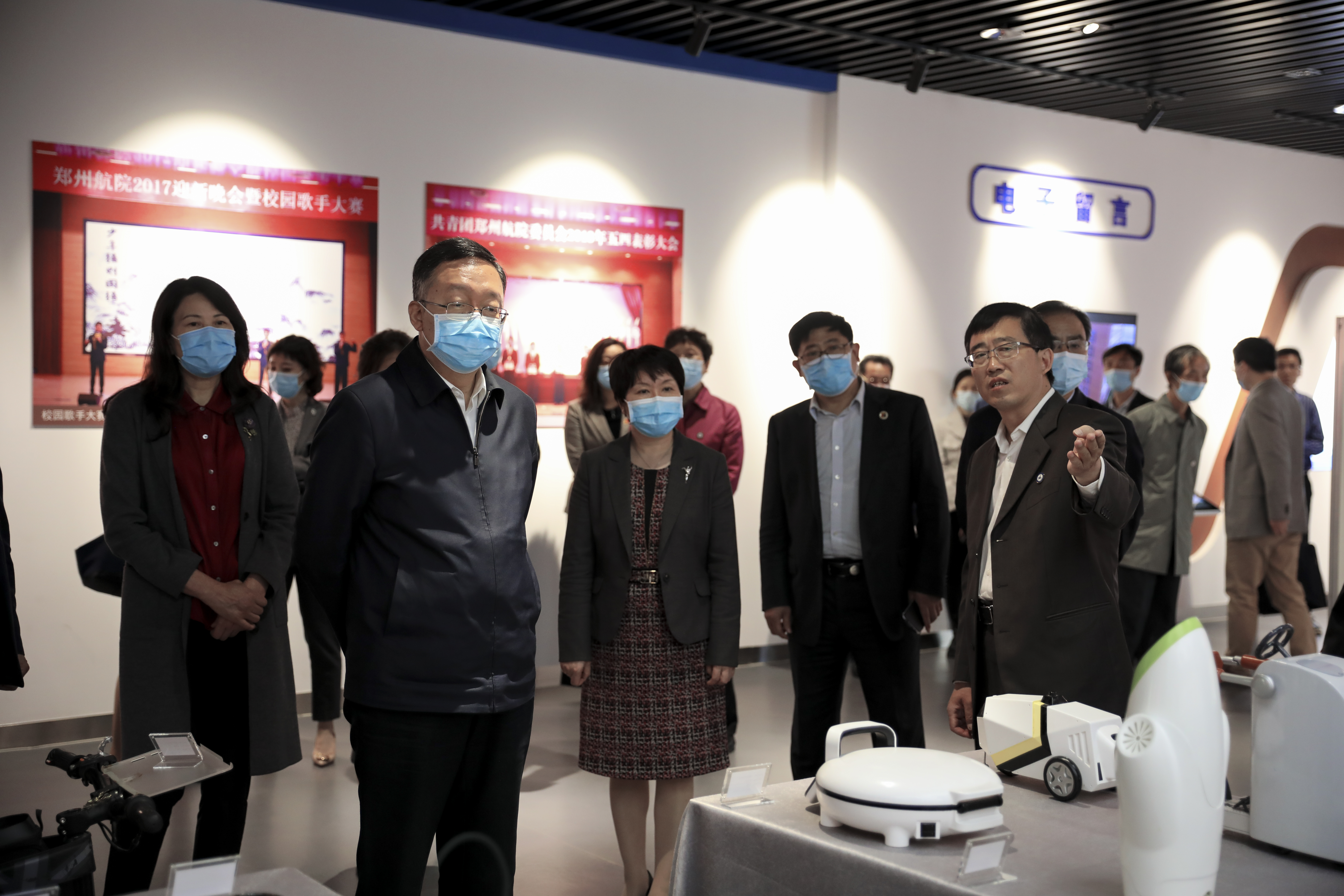 田学军副部长一行先后来到我校航空文化馆、虚拟仿真实验中心、“郑州法语联盟”、众创空间,实地调研中外合作办学规范管理、落实意识形态工作责任制和贯彻落实《深化新时代教育评价改革总体方案》情况。